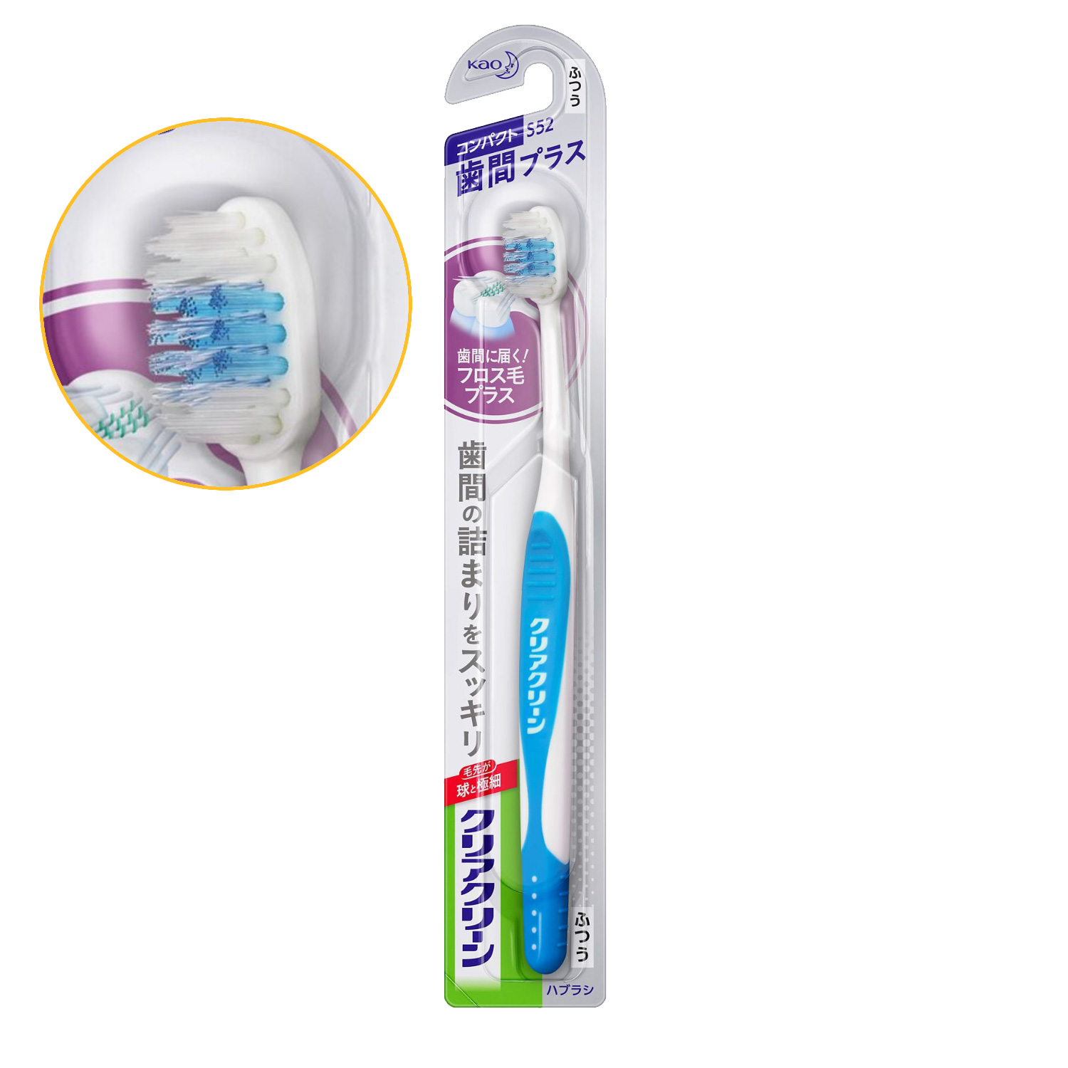 - Bàn chải KAO Clear Clean Interdental Plus Compact Normal là sự kết hợp độc đáo giữa lông hình cầu, lông siêu mịn và lông sợi nha khoa. Lông bàn chải hình cầu cạo sạch chất bẩn ngay cả khi nó tiếp xúc với bề mặt răng ở nhiều góc độ khác nhau! Hơn nữa, lông bàn chải siêu mịn sẽ nhanh chóng làm sạch bụi bẩn và cả những mảng bám khó tiếp cận từ sâu trong các kẽ hở! Lông chỉ nha khoa ba chiều tiếp cận sâu giữa các kẽ răng và loại bỏ chất bẩn bị tắc!