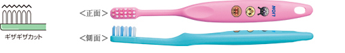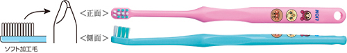 Các lông bàn chải cắt răng cưa mịn có thể đánh bóng răng sữa và các kẽ hở giữa các răng một cách sạch sẽ. Tay cầm "dày, bo tròn" giúp bàn tay nhỏ của trẻ em dễ dàng cầm nắm.