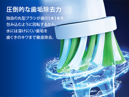 - Sức mạnh loại bỏ mảng bám áp đảo: Đầu bàn chải tròn độc đáo xoay tròn để bao bọc lấy từng kẽ răng, loại bỏ triệt để các mảng bám khó tan trong nước, tận đến tận các kẽ hở của nướu.