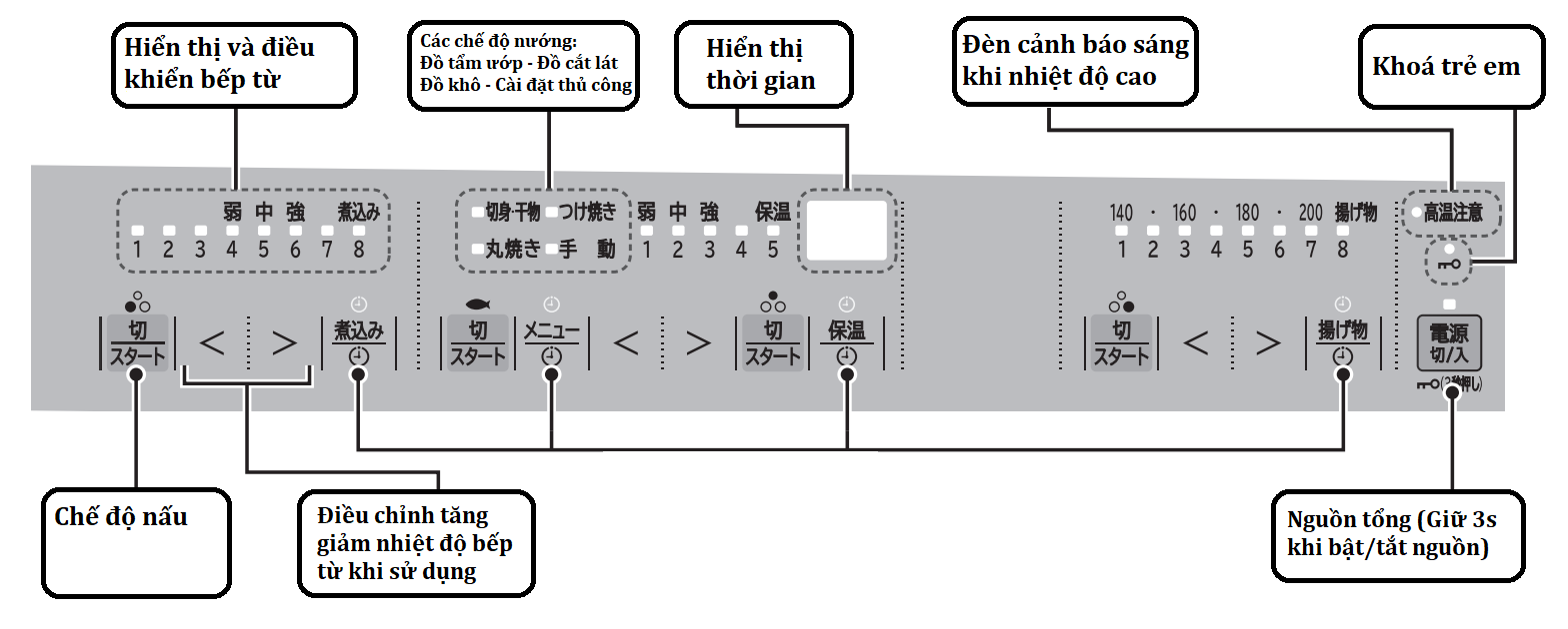 - Riêng dòng bếp từ của Hitachi điện áp sử dụng không được vượt quá 230V