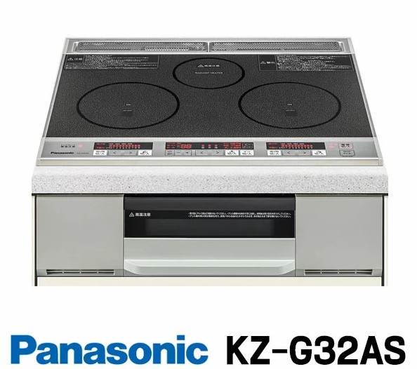 Bếp từ Panasonic KZ-G32AS có thiết kế cấu tạo gồm hai bếp từ IH, một bếp hồng ngoại và một lò nướng. Bếp có thiết kế mặt bếp màu đen, viền bếp màu trắng bạc. Chức năng đun nấu nhanh, đun bằng công nghệ từ IH không đốt cháy không khí và an toàn, lò nướng là loại nướng đối lưu hai mặt chín đều mà không cần đảo.