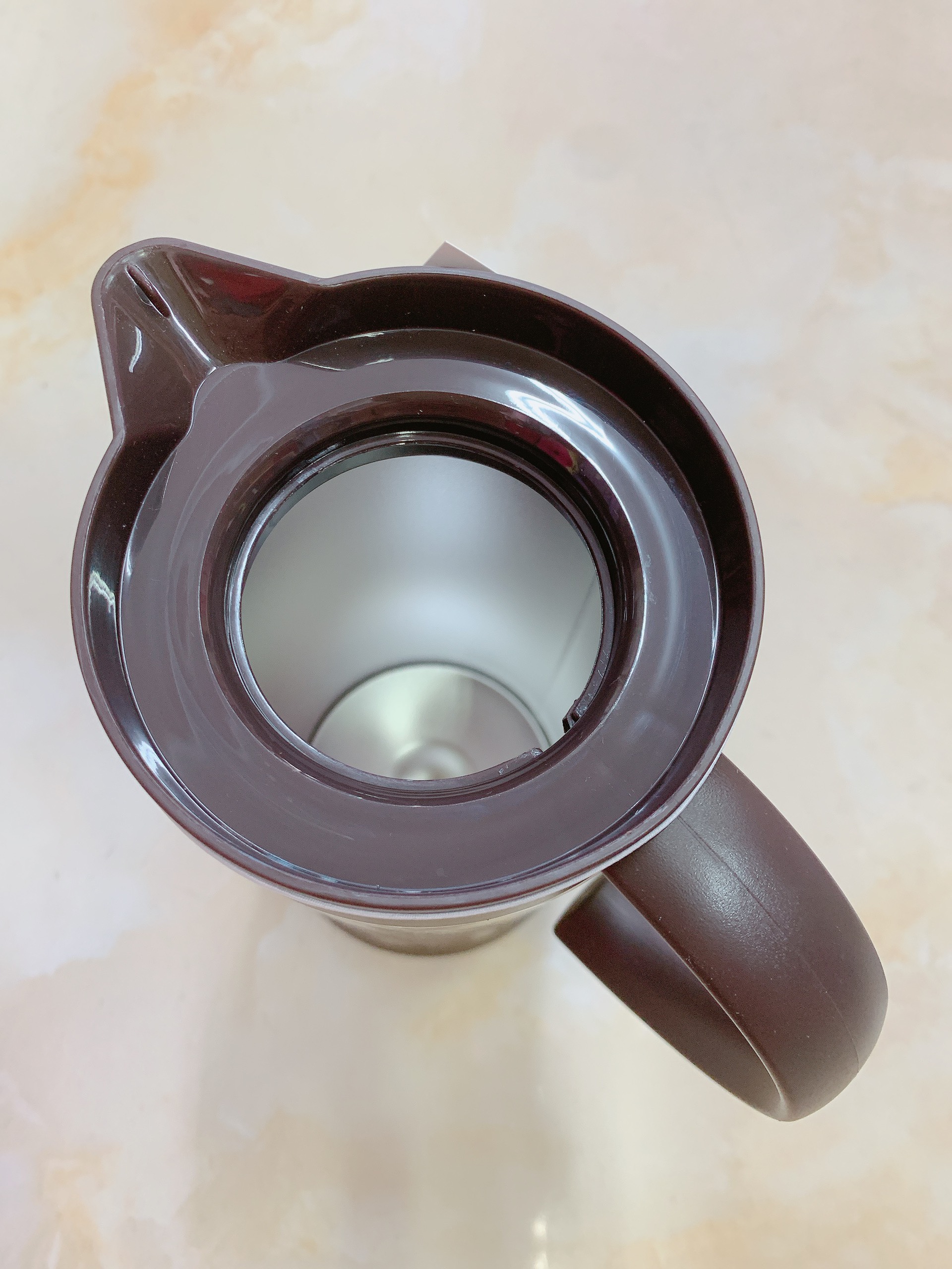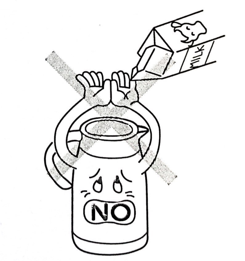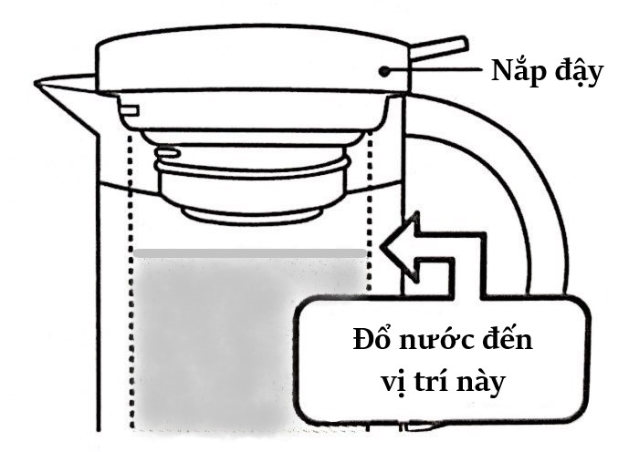 - Đổ nước ít hơn một chút so với đầu dưới của nắp, nếu cho quá nhiều có thể bị trào ra ngoài khi đóng nắp, gây ra nguy cơ bị bỏng.