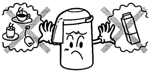 - Không thêm sữa, đồ uống từ sữa, nước hoa quả, v.v. có thể gây thối rữa và hư hỏng.