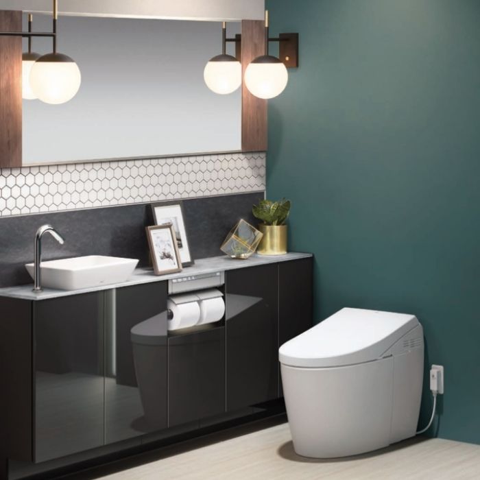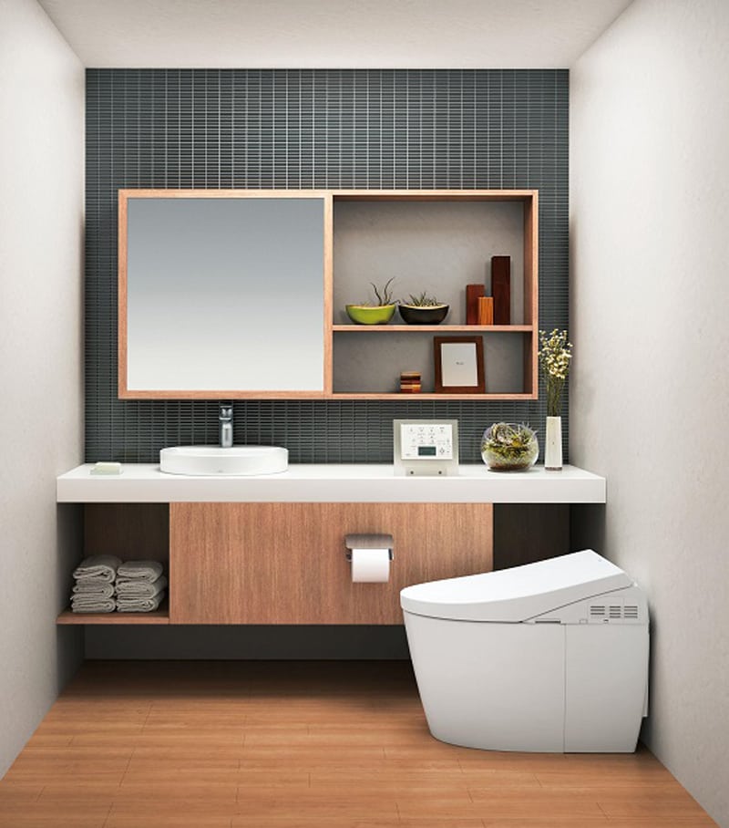 Nắp rửa điện tử WASHLET tích hợp: tự động đóng/mở nắp, sưởi ấm nắp ngồi, vòi rửa đa chức năng, sấy khô. Hệ thống khử mùi, diệt khuẩn thông minh.