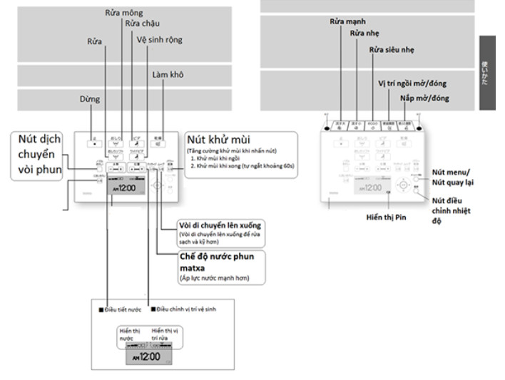 Với các chức năng được hiển thị trực tiếp trên bệt, thiết kế các phần điện và cơ được bố trí hợp lý. Trong quá trình sử dụng nên tránh trực tiếp nước phun lên có thể làm ảnh hướng đến cảm biến của bệt hoặc gây ra các lỗi bất thường.
