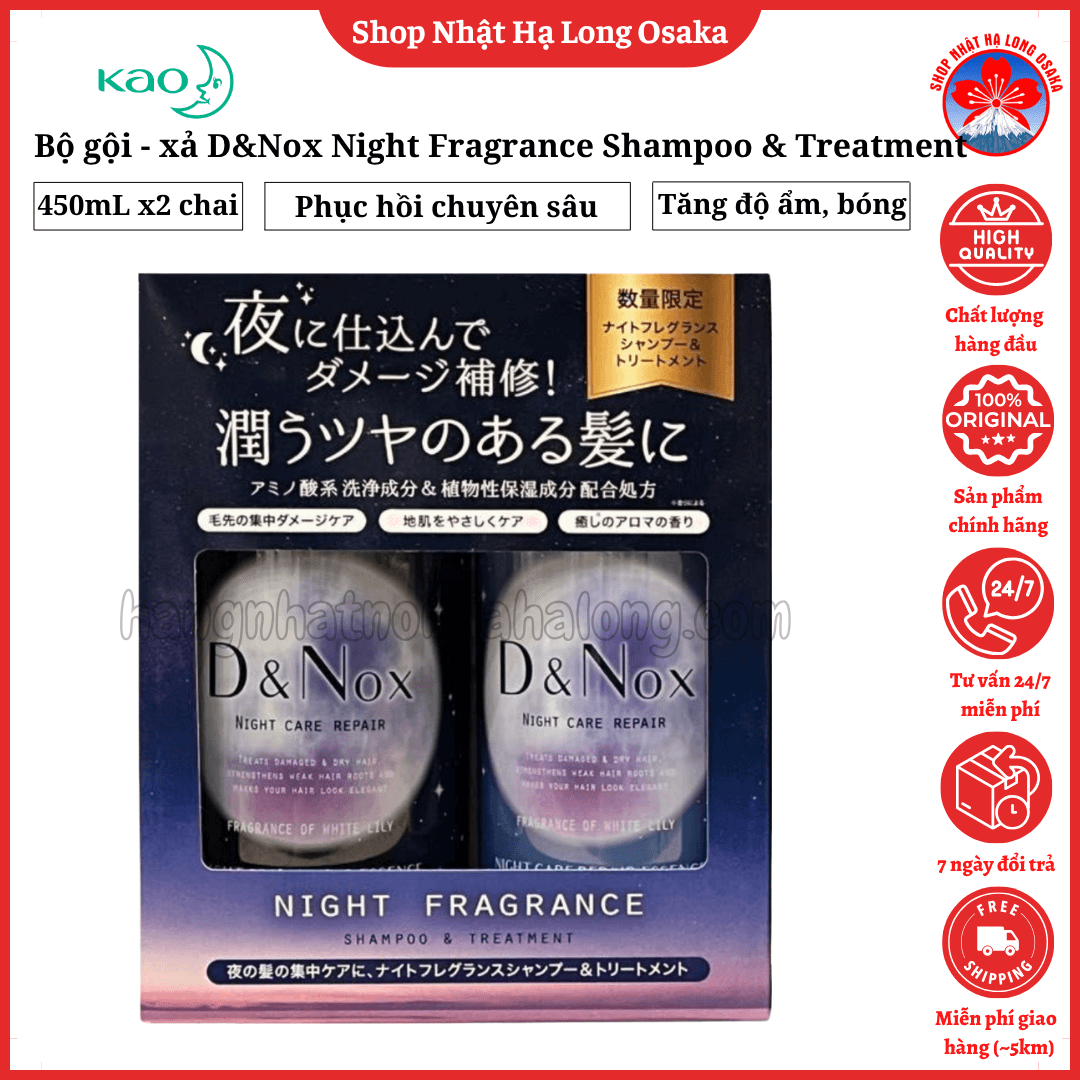 Bộ dầu gội và xả D&Nox Night Care Repair là giải pháp lý tưởng cho mái tóc khô xơ, chẻ ngọn và hư tổn do tác động từ nhiệt, hóa chất và môi trường. Với công thức chăm sóc chuyên sâu vào ban đêm – thời điểm vàng để phục hồi cấu trúc tóc – sản phẩm giúp mái tóc mềm mại, vào nếp và sáng khỏe khi bạn thức dậy.