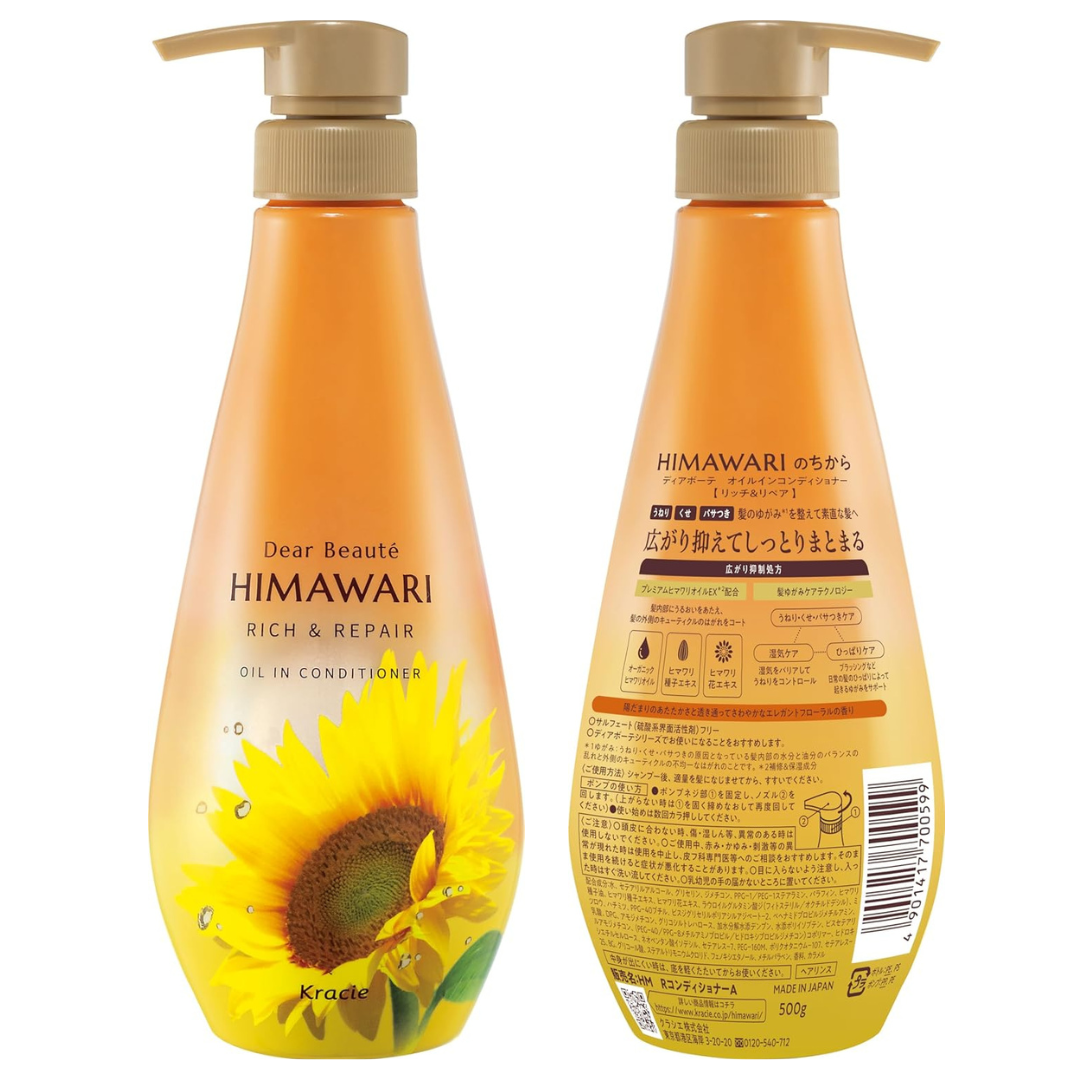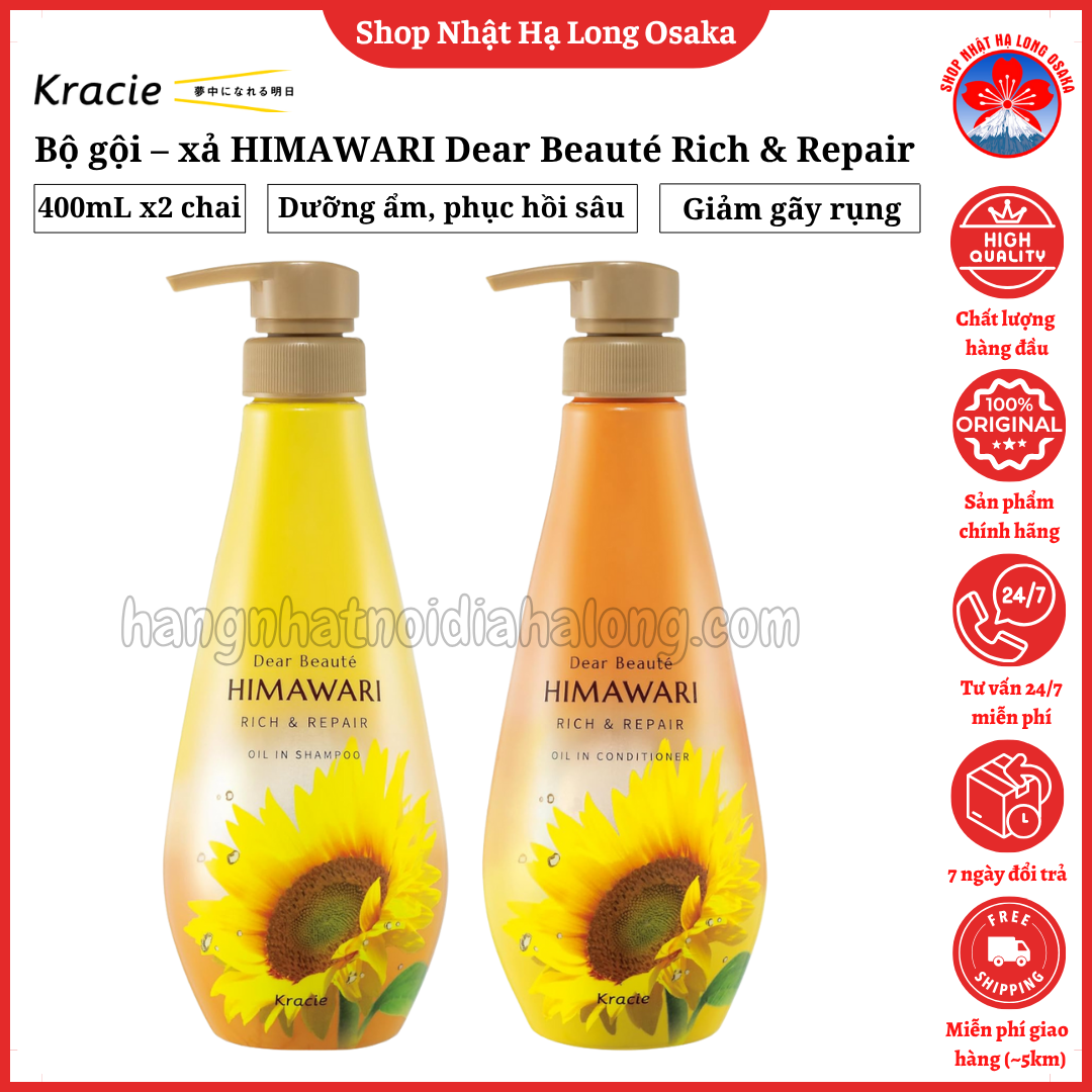 Kracie HIMAWARI Dear Beauté Rich & Repair là bộ gội – xả phục hồi chuyên sâu dành cho tóc khô xơ, thiếu ẩm và dễ rối. Công thức chứa Dầu Hướng Dương Cao Cấp EX và công nghệ “Deformation Care Technology” giúp nuôi dưỡng tóc từ gốc đến ngọn, phục hồi biểu bì, giảm gãy rụng và mang lại độ suôn bóng tự nhiên. Không chứa sulfate, không silicone – an toàn cho da đầu nhạy cảm.