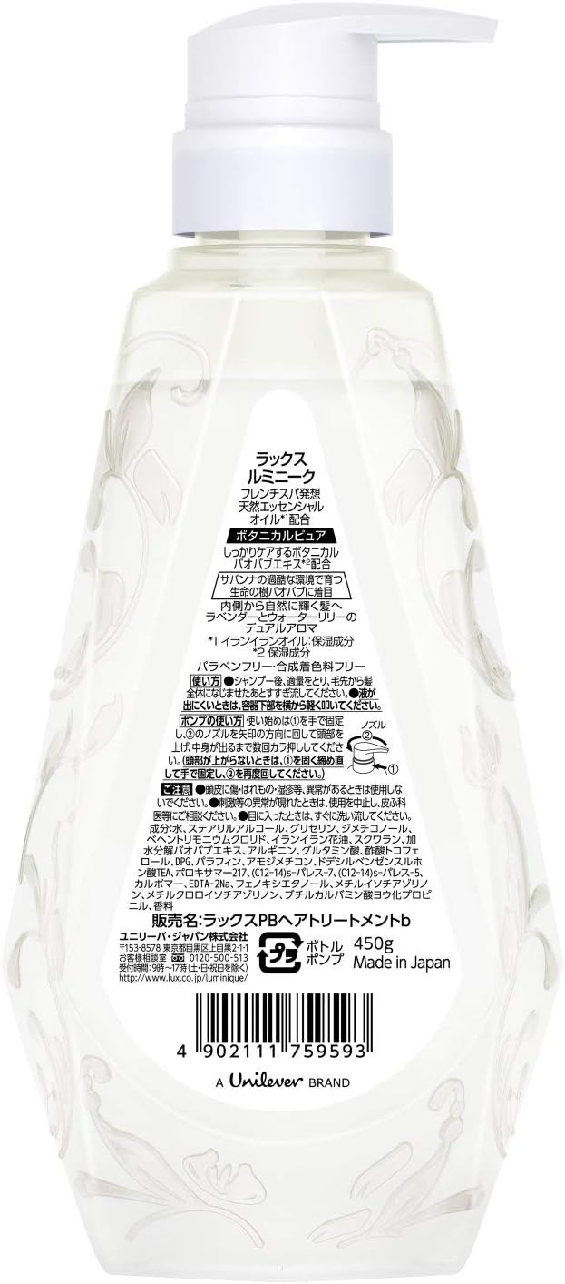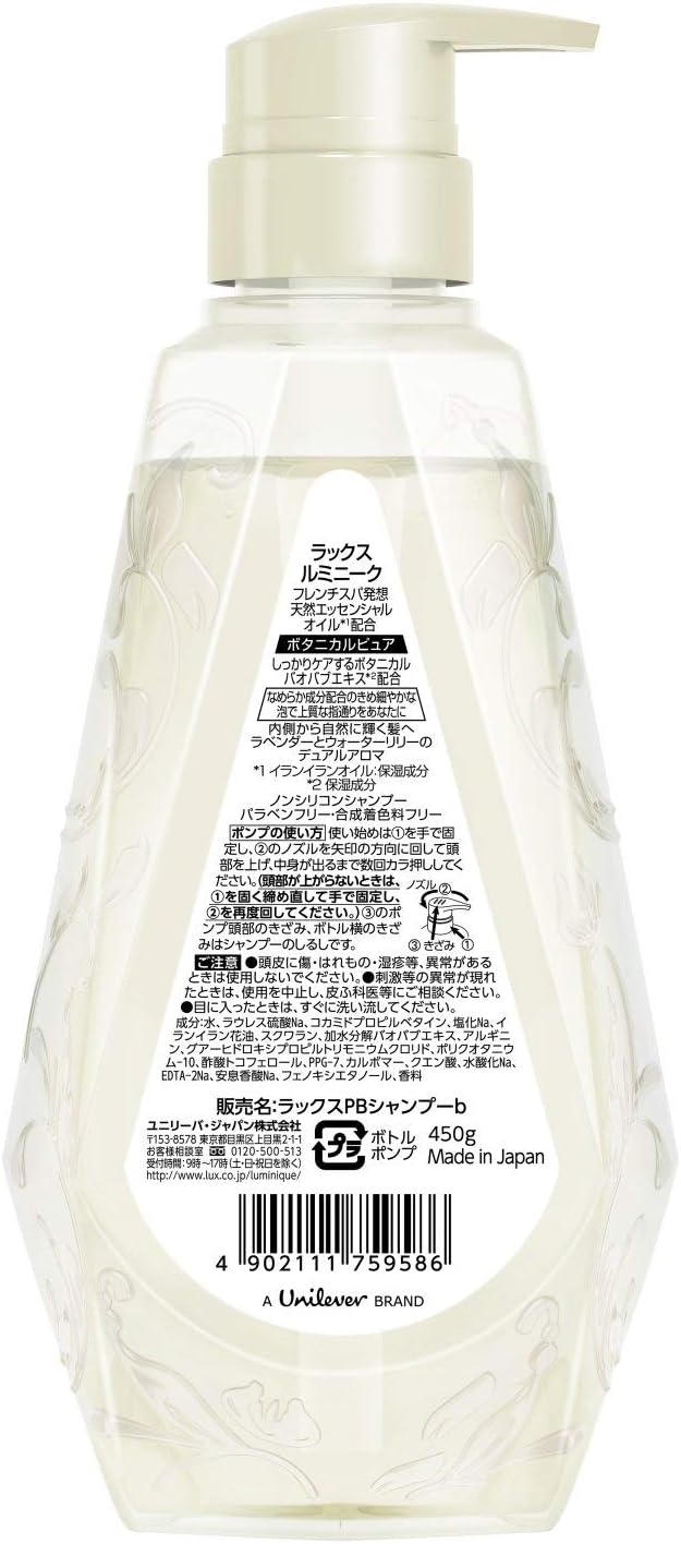 Lux Luminique Botanical Pure là bộ gội – xả dưỡng tóc cao cấp đến từ Nhật Bản, mang lại giải pháp chăm sóc tóc mềm mượt, suôn thẳng tự nhiên nhờ chiết xuất tinh dầu hoa ngọc lan tây và squalane dưỡng sâu. Công thức không chứa silicone, paraben hay chất tạo màu tổng hợp, giúp làm sạch da đầu dịu nhẹ, phục hồi tóc hư tổn, khô xơ và giữ tóc luôn thơm mát, óng ả suốt ngày dài. Sản phẩm lý tưởng cho những ai yêu thích chăm sóc tóc từ thiên nhiên, an toàn và tinh tế.