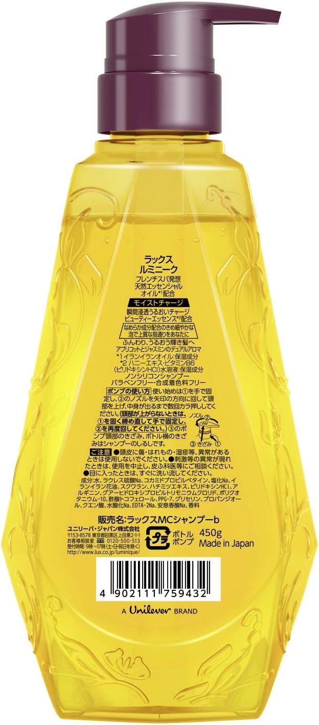LUX Luminique Moist Charge là dòng dầu gội không silicone cao cấp đến từ Nhật Bản, được thiết kế dành riêng cho tóc khô, xơ rối, thiếu ẩm và dễ bông xù. Lấy cảm hứng từ liệu pháp chăm sóc tại spa Pháp, sản phẩm không chỉ làm sạch nhẹ nhàng mà còn mang lại trải nghiệm thư giãn như ở salon.