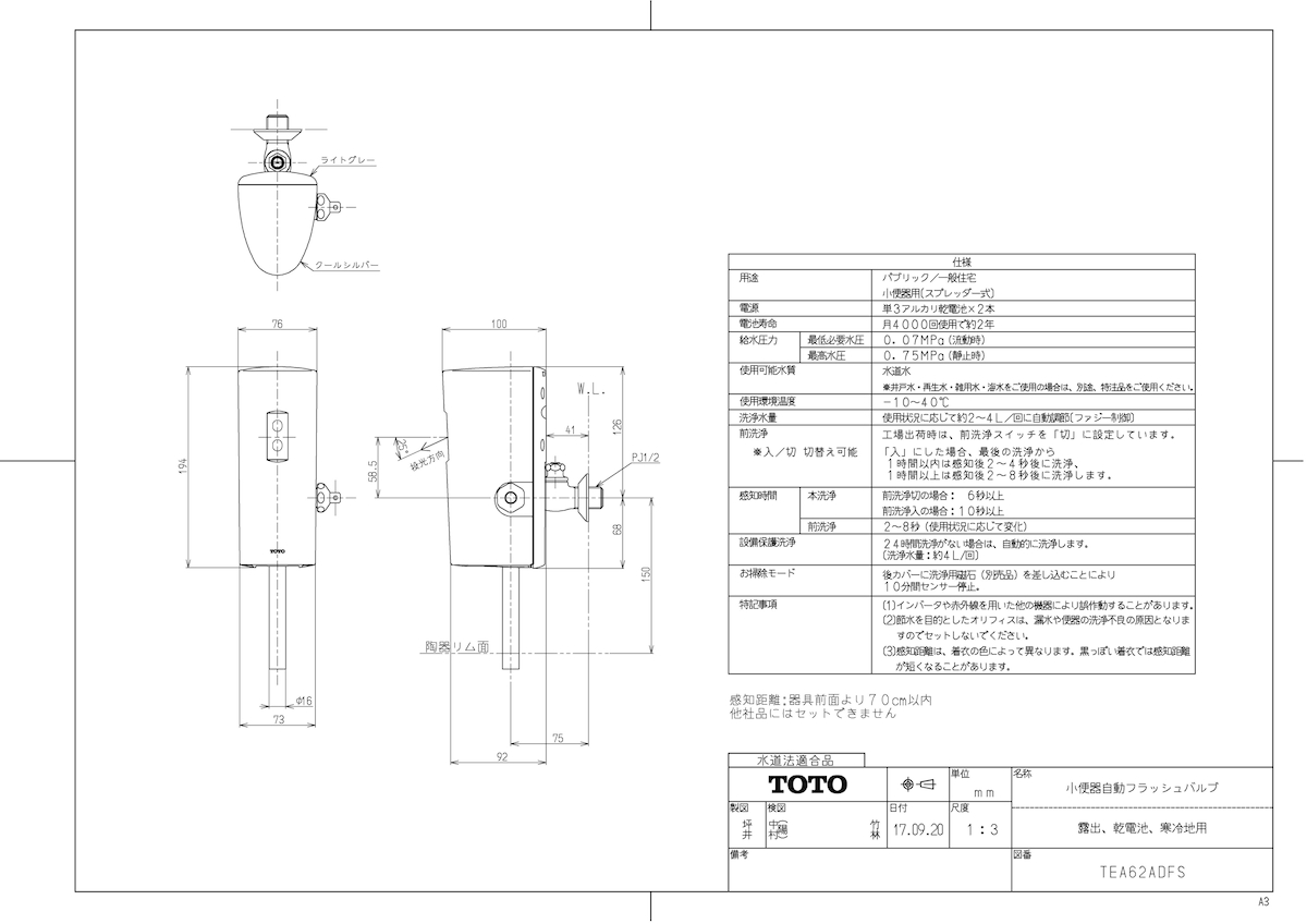 Bản vẽ Bộ tiểu nam cảm ứng TOTO UFH508CR + TEA62ADFS