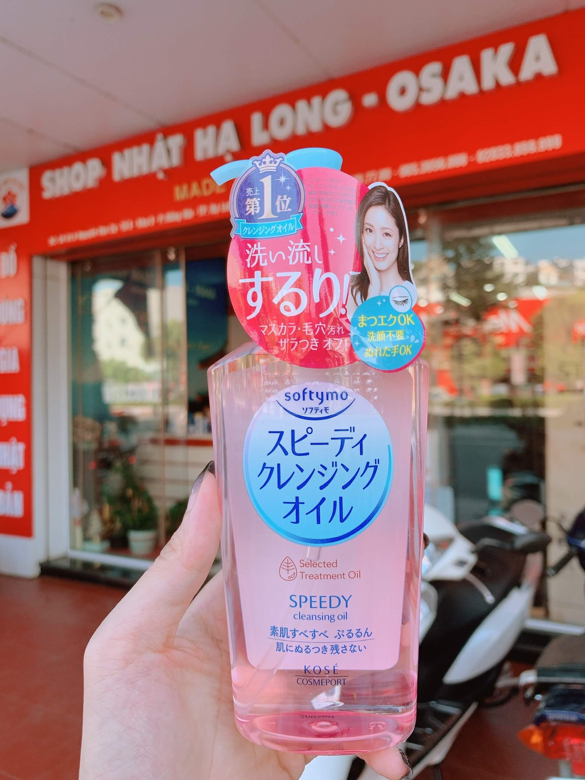 - Dầu Tẩy Trang Kose Softymo Speedy Cleansing Oil có thể nhanh chóng tẩy sạch được mọi lớp trang điểm cứng đầu nhất, sản phẩm hiệu quả ngay cả khi sử dụng lúc tay ướt.