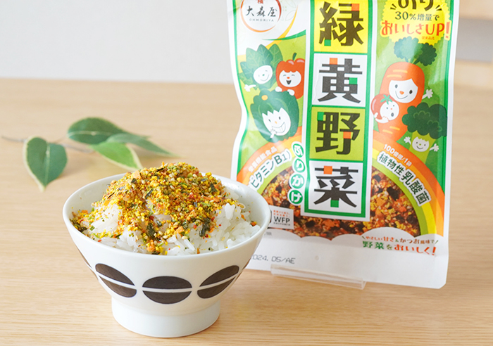 Gia vị rắc cơm Omoriya sử dụng nguyên liệu chính 12 loại rau củ nên khi ăn có vị ngọt đậm của rau.