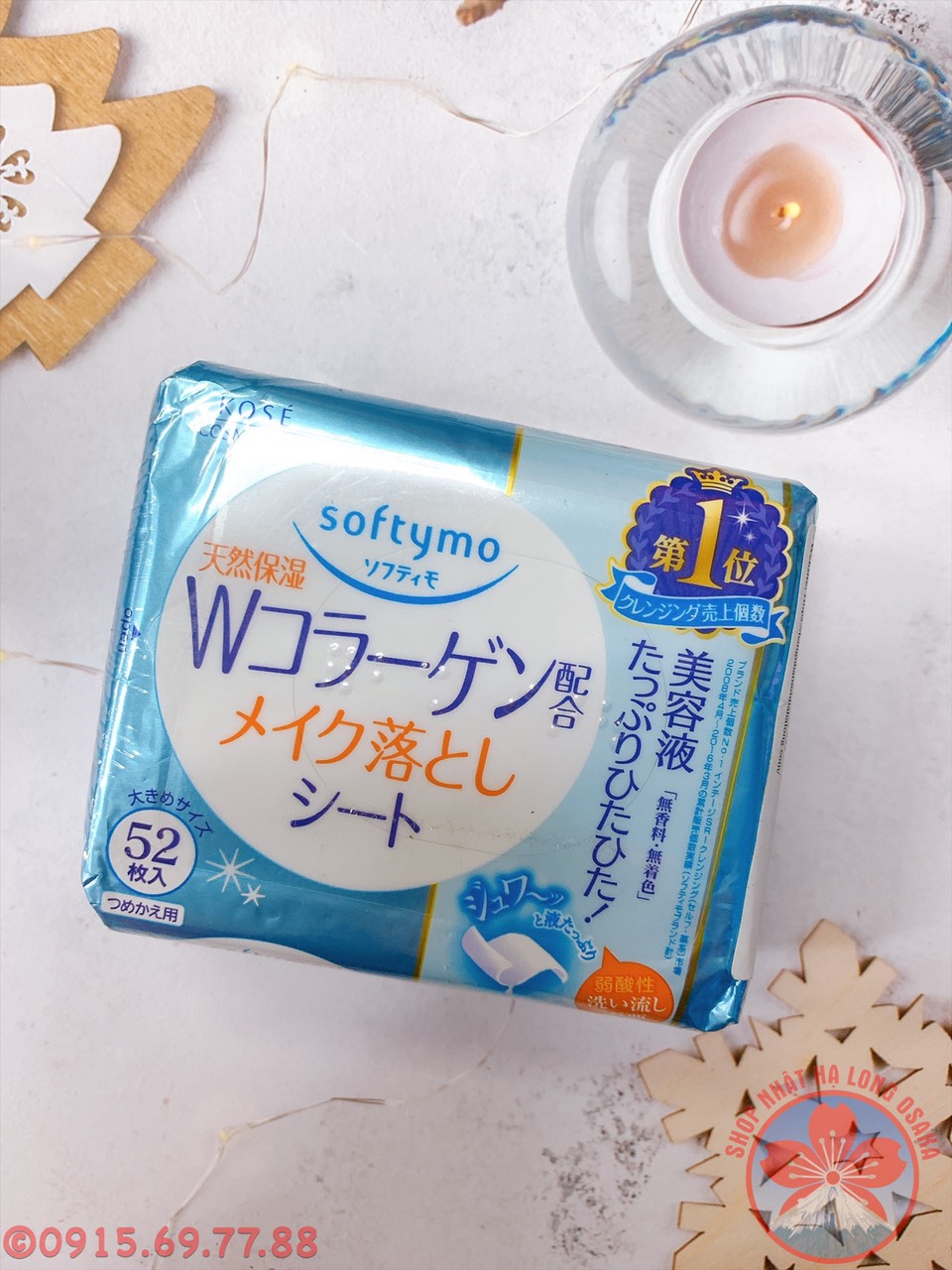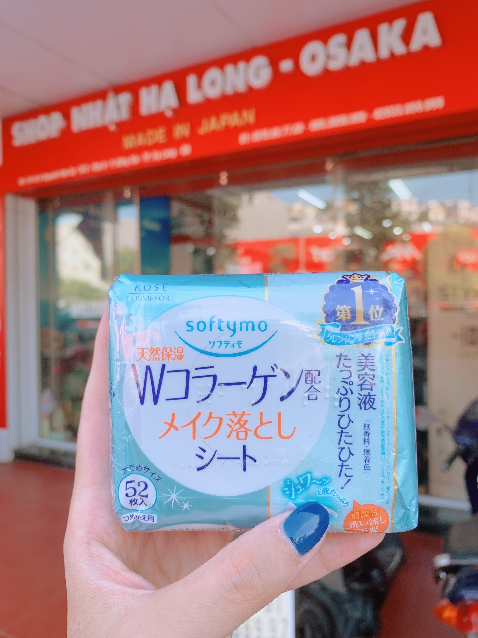 - Khăn giấy ướt tẩy trang Kose Softymo Makeup Remover Sheet (Collagen) 52 miếng xanh nhạt là sản phẩm có công thức collagen làm cho làn da của bạn trở nên mềm mại và tươi trẻ hơn.