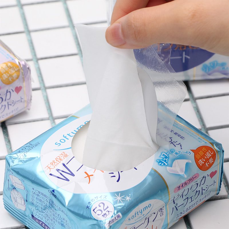 Giấy tẩy trang Kose Softymo Makeup Remover Sheet dưỡng da, bổ sung Collagen 52 tờ