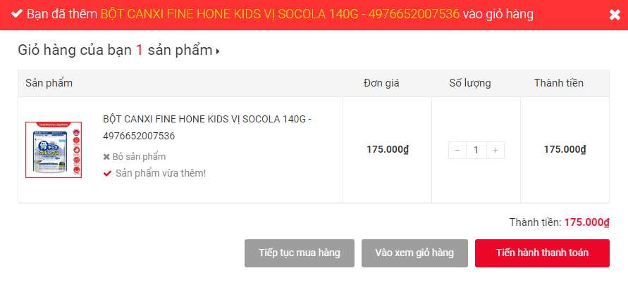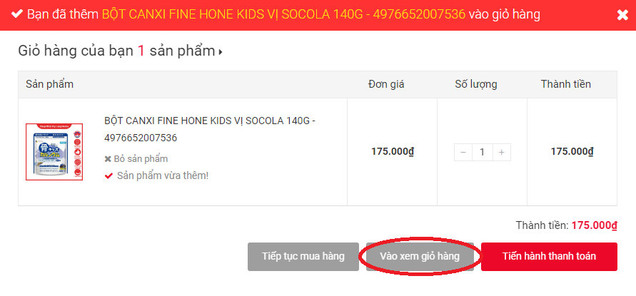 ► Nếu bạn muốn xem giỏ hàng để cập nhật sản phẩm: Bấm "Vào xem giỏ hàng"