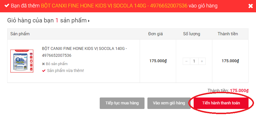 Sau khi lựa chọn xong các sản phẩm cần mua, quý khách kiểm tra lại số lượng và giá cả trước khi bấm vào "Tiền hành thanh toán".