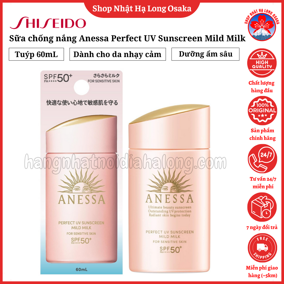 Trong hơn 100 năm nghiên cứu và phát triển các sản phẩm chống nắng, Shiseido luôn được xem là thương hiệu tiên phong trong lĩnh vực bảo vệ da trước tác hại của tia cực tím. Dòng Sữa chống nắng Anessa Perfect UV Sunscreen Mild Milk SPF50+ PA++++ là lựa chọn hoàn hảo cho da nhạy cảm, da em bé, và những ai tìm kiếm một sản phẩm chống nắng vừa mạnh mẽ vừa dịu nhẹ. Với kết cấu sữa mịn, thoáng nhẹ, dễ tán đều và thấm nhanh, hoàn toàn không gây cảm giác nặng mặt, bí bách hay nhờn rít 👉 Lý tưởng để dùng hàng ngày, kể cả trong môi trường nắng gắt hoặc hoạt động ngoài trời.