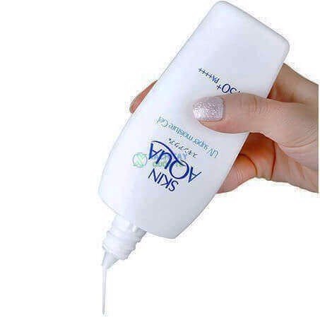 Kem chống nắng Skin Aqua Super Moisture Gel chống nước và mùi hôi cao, có thể được dùng như một lớp nền trang điểm, có thể dễ dàng rửa sạch bằng xà phòng.