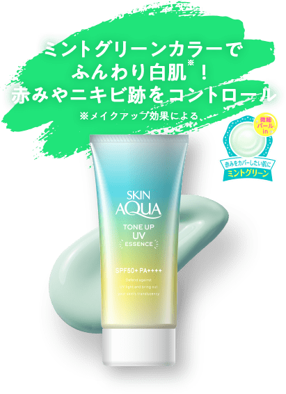 Skin Aqua Tone Up UV Essence Mint Green là kem chống nắng đa năng đến từ thương hiệu Rohto Nhật Bản, vừa bảo vệ da trước tác hại tia UVA/UVB với chỉ số SPF50+/PA++++, vừa điều chỉnh tông màu da nhờ hiệu ứng Translucent Blue × Redness Cover Green. Phiên bản màu xanh bạc hà mát dịu này đặc biệt phù hợp cho làn da dễ bị mẩn đỏ, da có vết thâm mụn hoặc da xỉn màu, giúp da trở nên sáng trong, rạng rỡ và đều màu tự nhiên ngay khi sử dụng.