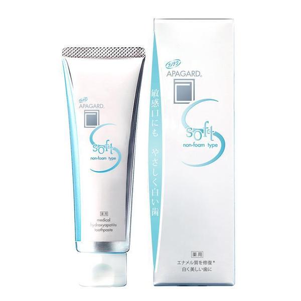 Kem đánh răng Apagard Soft Non-foam type được sử dụng trong thị trường nội địa Nhật Bản, Apagard Soft (Non-foam type - màu xanh dương) thuộc dòng kem đánh trắng răng cao cấp của Apagard được người dân ưa chuộng và tin dùng với các tính năng cực kì đặc biệt như: Có chứa các hạt làm sạch mới giúp đánh bật các tạp chất bám lại trên răng tạo một cảm giác sạch và thơm mát sau khi sử dụng, thành phần mHAP - hay còn gọi là Fluor có công dụng ngăn ngừa sâu răng hiệu quả, thành phần Canxi Nano hydroxyapatite - giúp bổ sung canxi dạng vi tinh thể cho răng luôn chắc khỏe. Đồng thời thiết kế bạc hà mềm mại không chứa chất tạo bọt, ít gây kích ứng, dành cho những người dễ bị kích ứng.