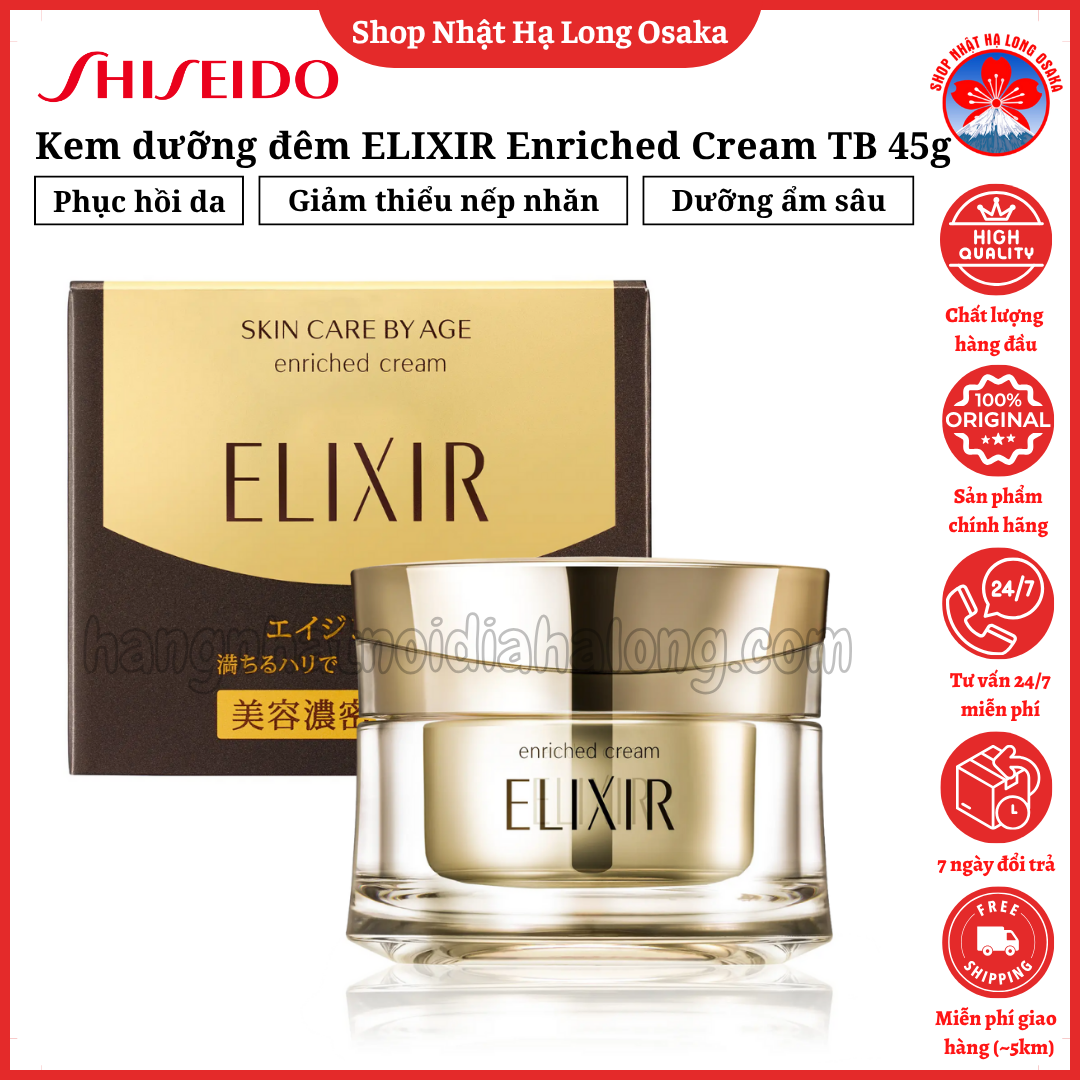 👉 Bảng thành phần của Elixir Enriched Cream TB là sự hòa quyện tinh tế giữa khoa học công nghệ của Shiseido và tinh túy thực vật thiên nhiên Nhật Bản – mang đến khả năng dưỡng ẩm sâu, phục hồi độ săn chắc và nuôi dưỡng làn da mịn mượt, căng sáng từng ngày.