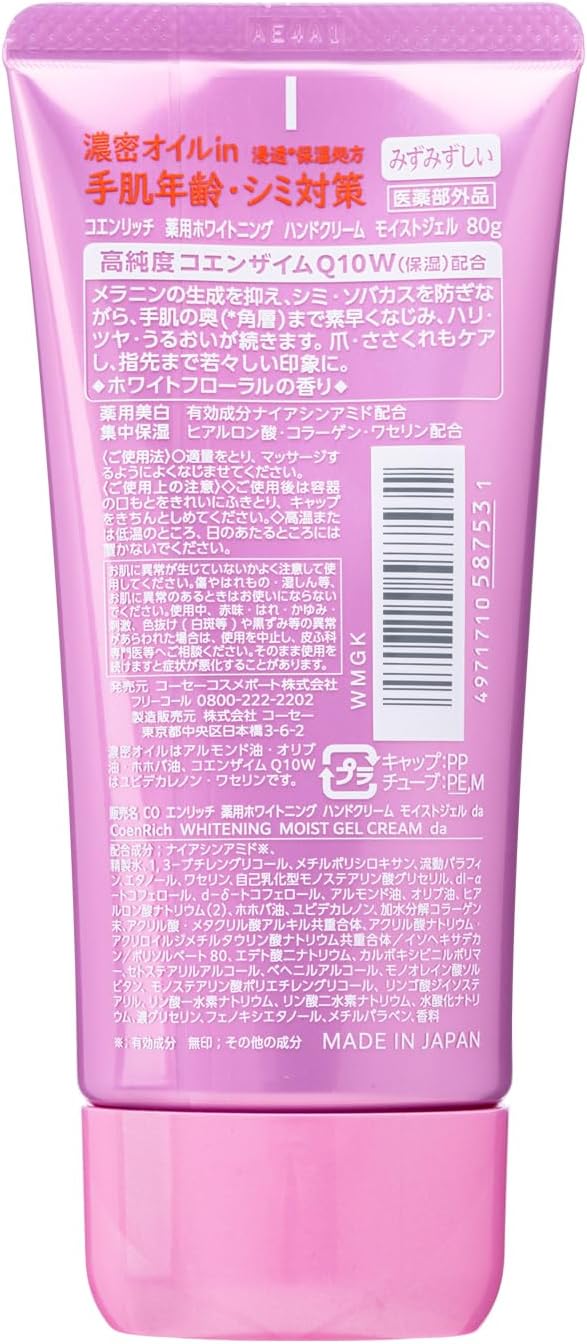 💖 Kem dưỡng da tay dạng gel trong suốt mát lạnh, chứa Coenzyme Q10 tinh khiết cao kết hợp Niacinamide làm trắng, mang lại cảm giác sảng khoái, dưỡng ẩm sâu và ngăn ngừa thâm nám. Công thức thẩm thấu nhanh, không nhờn dính, vừa dưỡng mịn da tay vừa chăm sóc móng tay, giúp đôi tay luôn tươi trẻ, rạng rỡ.