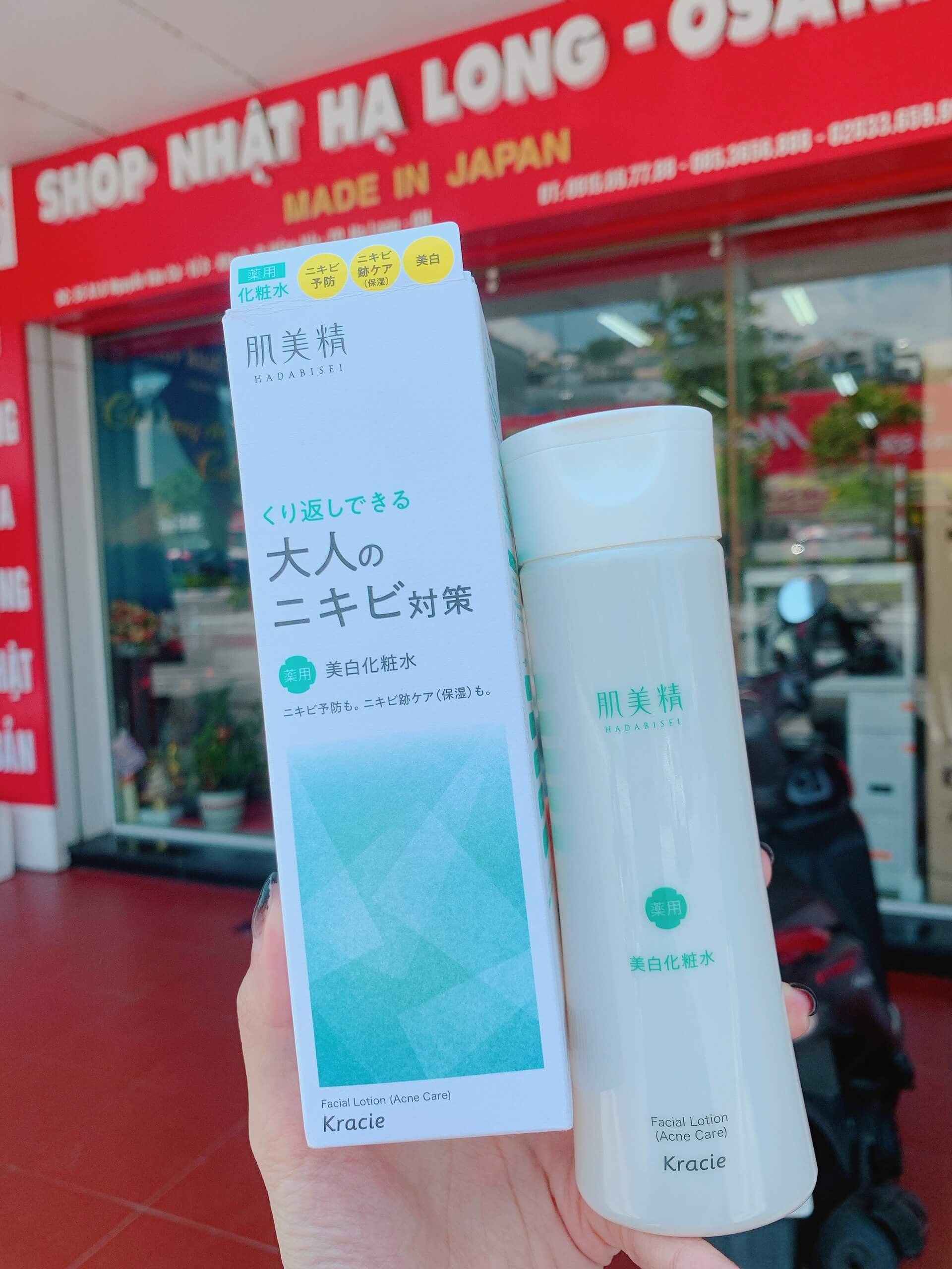 Lotion trị mụn Hadabisei Kracie Acne Care 200mL Nhật Bản được đánh giá cao trong hiệu quả điều trị mụn và làm mờ các vết thâm sau mụn. Tăng cường các chất điều trị mụn vào sâu trong lỗ chân lông, làm giảm mụn, giảm hiện tượng sưng tấy của mụn chỉ sau vài giờ, đẩy mạnh quá trình làm mới tế bào da, chữa trị vết thâm do mụn để lại.