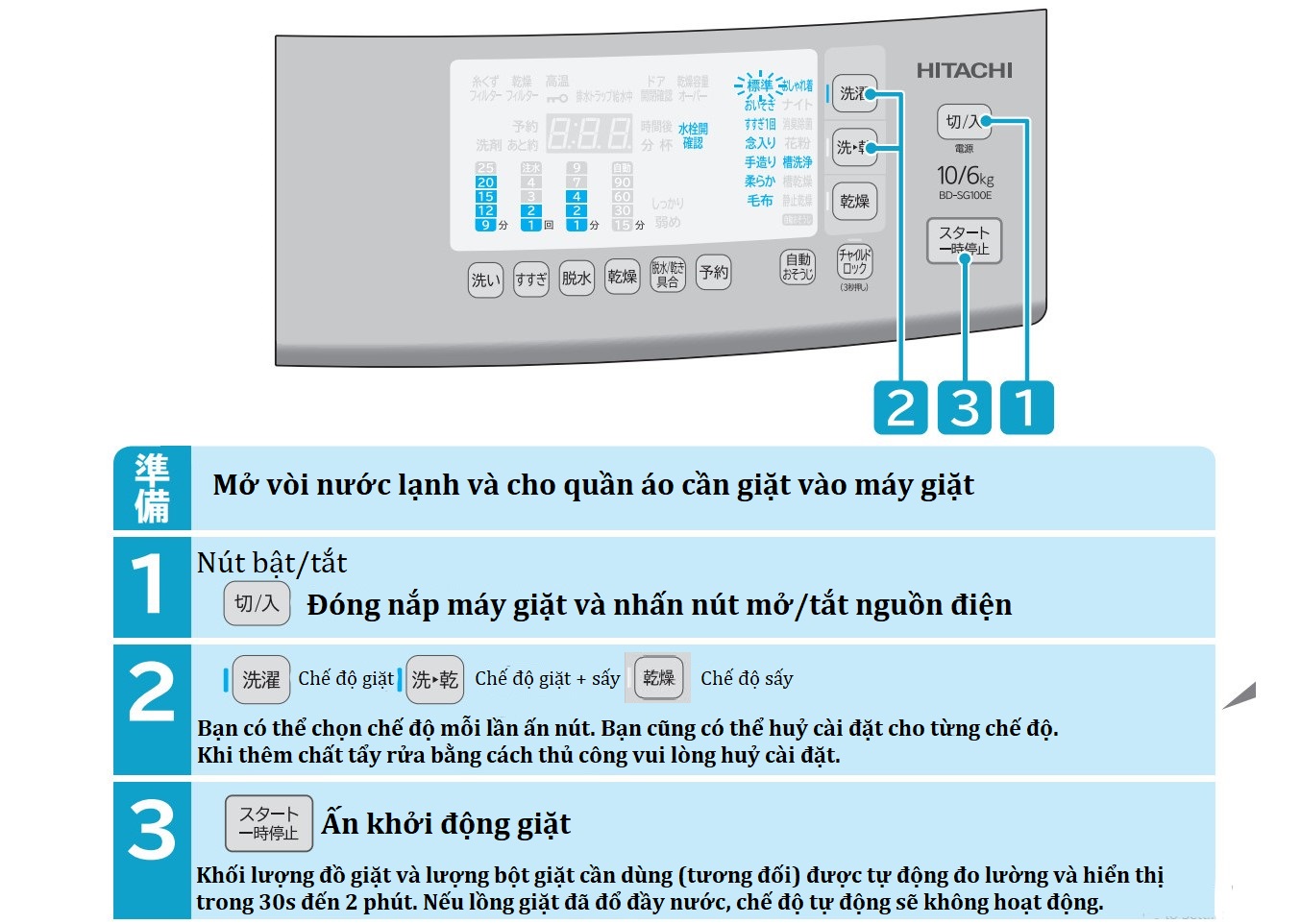 | Chức năng giặt | Chức năng làm sạch | Làm sạch cảm biến |