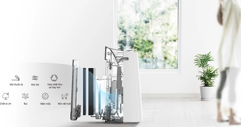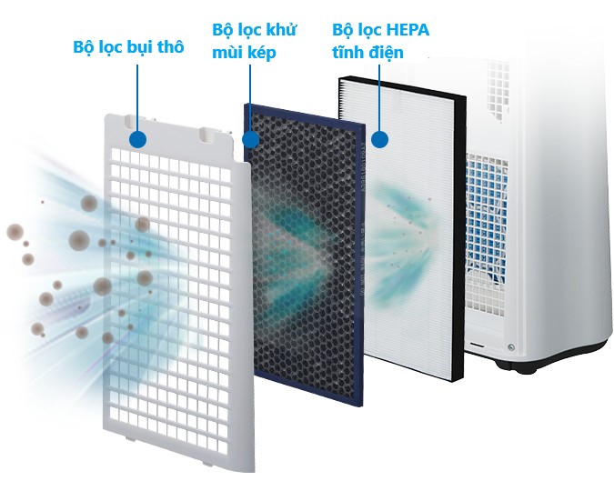 Bộ lọc HEPA tĩnh điện với tuổi thọ 10 năm (tùy điều kiện sử dụng): Bộ lọc hiệu suất cao hút 10.000 hạt cực nhỏ. Ngoài ra, nó có đặc điểm là có khả năng chống tắc nghẽn vì nó được tích điện tĩnh.