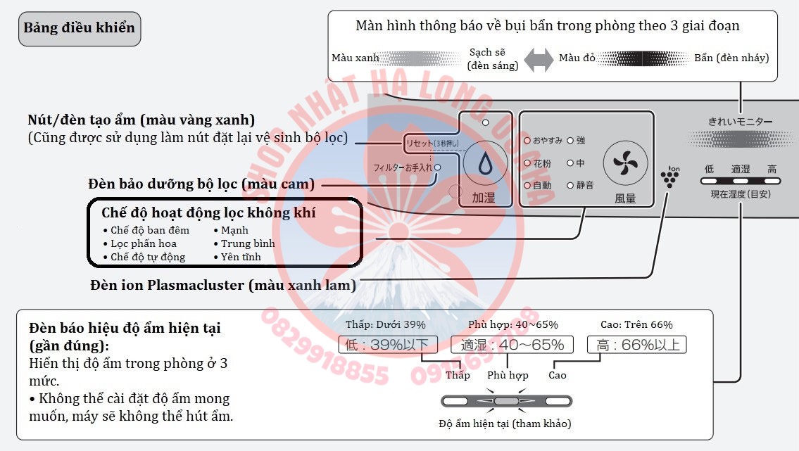 Thân máy lọc không khí Plasmacluster hỗ trợ "PM2.5": Loại bỏ 99% các hạt có kích thước từ 0,1 đến 2,5 µm.