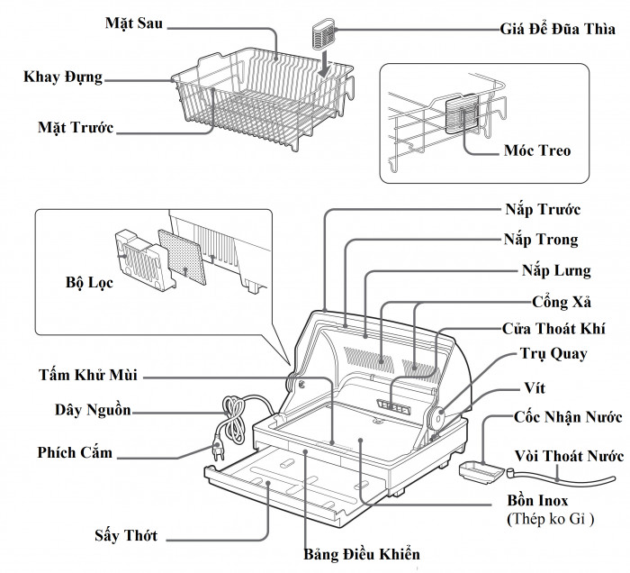 - Các chi tiết, phụ kiện của máy sấy bát Mitsubishi có thể dễ dàng tháo rời thuận tiện cho việc vệ sinh, lau rửa.