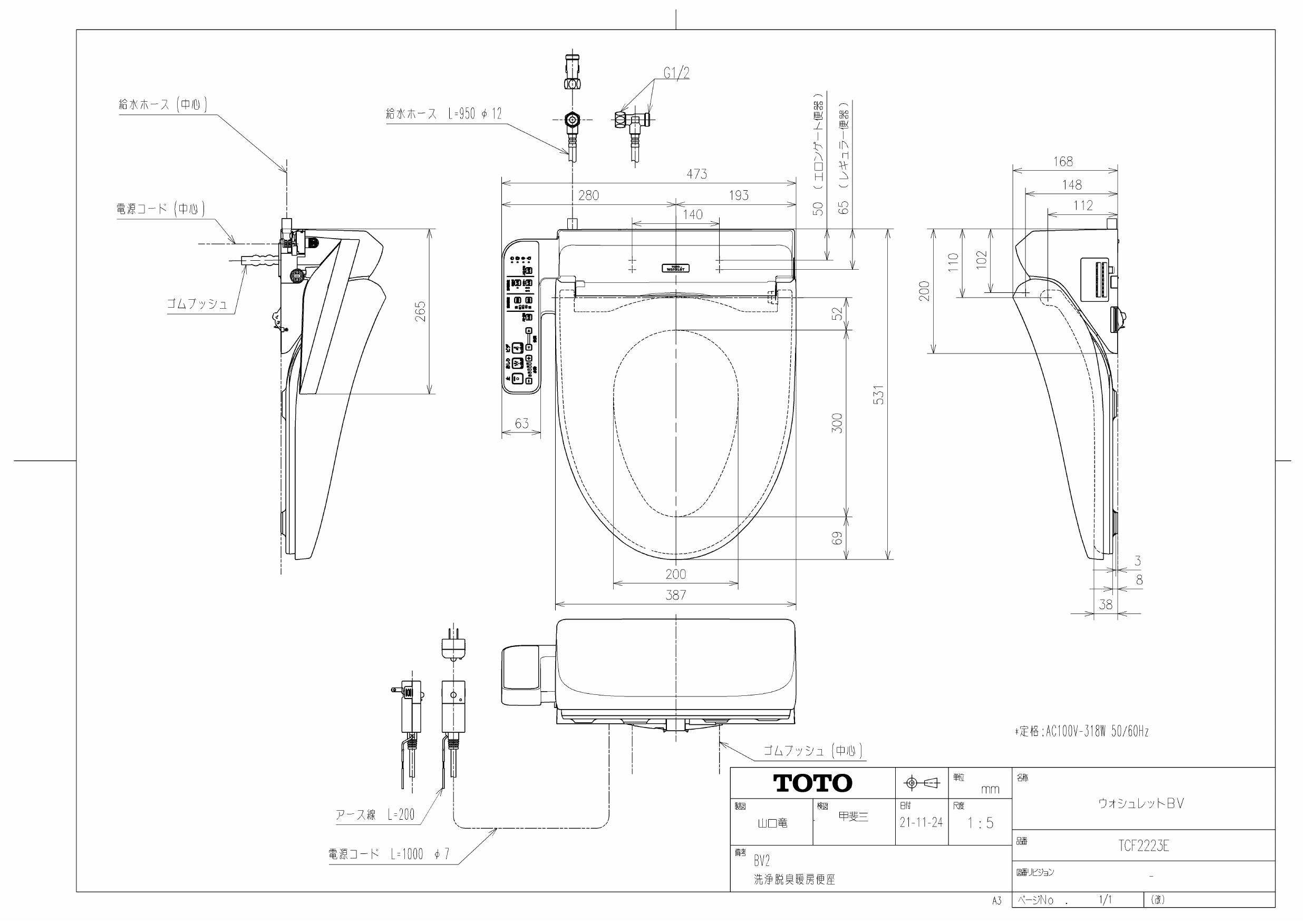 Bản vẽ chi tiết Nắp bệt phun rửa tự động Toto TCF2223E