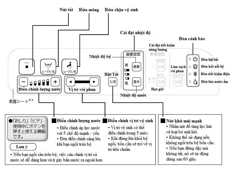 Với các chức năng được hiển thị trực tiếp trên bệt, thiết kế các phần điện và cơ được bố trí hợp lý. Trong quá trình sử dụng nên tránh trực tiếp nước phun lên có thể làm ảnh hướng đến cảm biến của bệt hoặc gây ra các lỗi bất thường.
