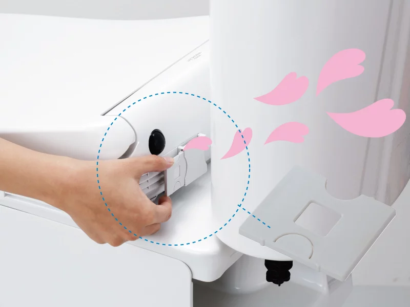 Khử mùi tự động và hút mùi mạnh gấp đôi sau khi xả — giữ nhà vệ sinh luôn trong trạng thái không mùi khó chịu.