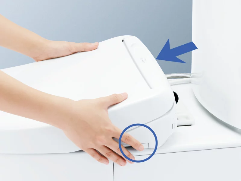 Trượt thân máy Washlet vào đế giữ đến khi nghe tiếng “click”