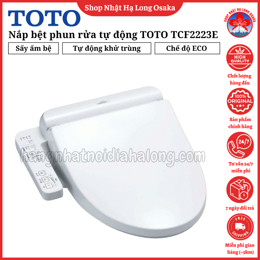 A: TOTO TCF2223E tương thích với đa số bồn cầu dạng thân dài (elongated) theo tiêu chuẩn hiện đại. Tuy nhiên, với một số loại bồn cầu đặc thù hoặc đời cũ có kích thước khác chuẩn, cần kiểm tra trước khi lắp để đảm bảo thẩm mỹ và độ kín khít của hệ thống. Quý khách có thể cung cấp hình ảnh hoặc mã bồn cầu để kỹ thuật viên kiểm tra chính xác độ phù hợp.