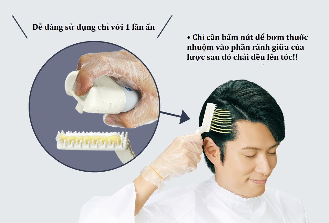- Nhuộm tóc Men'S Bigen đơn giản chỉ cần nhấn nút & chải, không cần pha trộn như những loại trước đây.