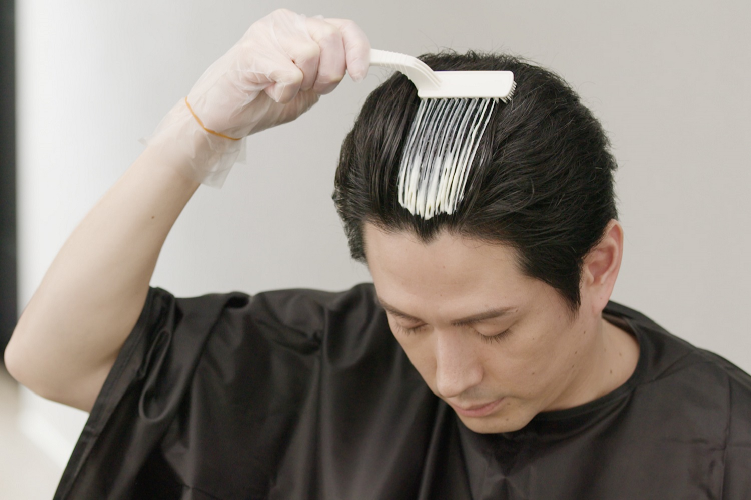 - Chải đều lên tóc (trạng thái tóc khô) cho thuốc nhuộm được thấm vào tóc