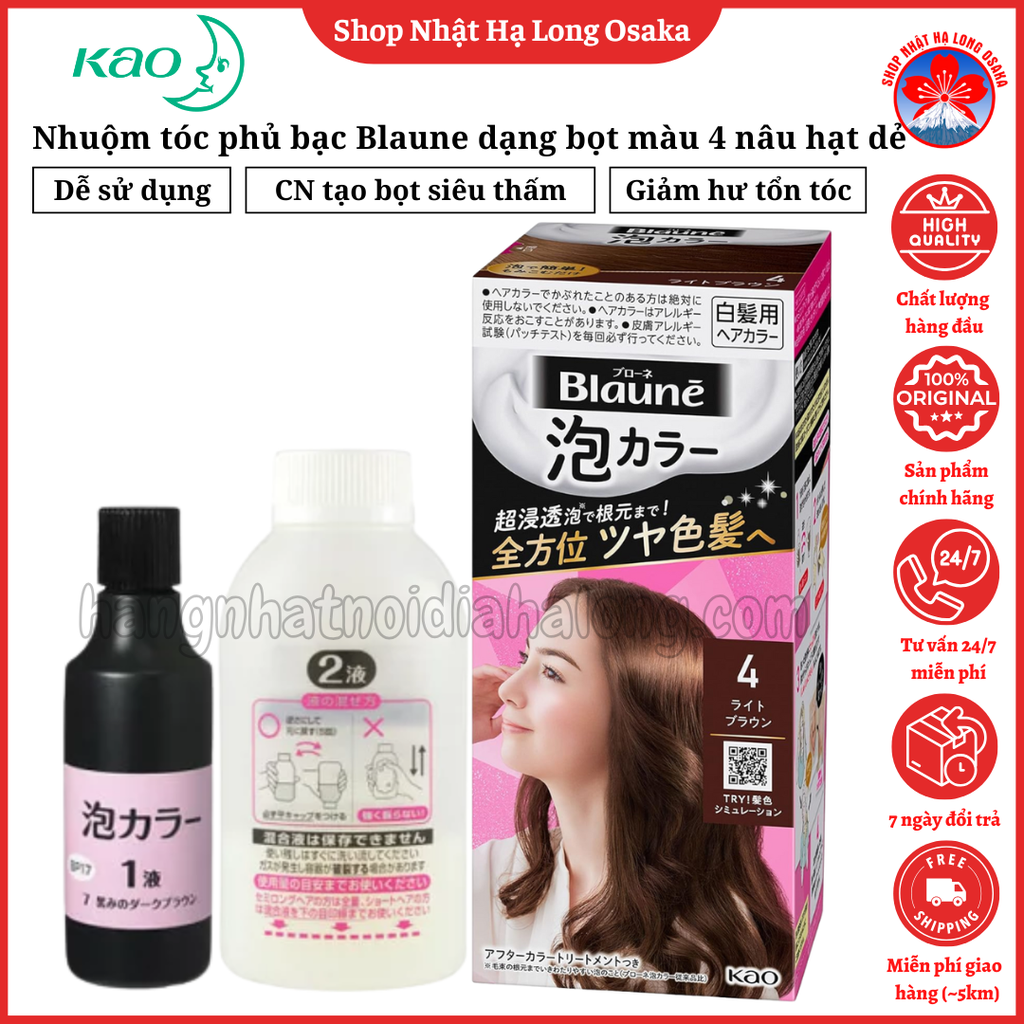 A: Hoàn toàn có thể. KAO Blaune thiết kế riêng cho tóc bạc nên dù bạc lưa thưa, bạc từng mảng hay bạc toàn phần, màu vẫn lên đồng nhất và tự nhiên. Công thức bọt cải tiến giúp bao phủ từng kẽ tóc, đảm bảo không bị sọc màu hoặc ánh xanh – vàng thường gặp ở tóc bạc nhiều. Nếu muốn che bạc tối đa nhưng vẫn giữ vẻ trẻ trung, đây là một trong những dòng hiệu quả nhất trong phân khúc nhuộm Nhật.