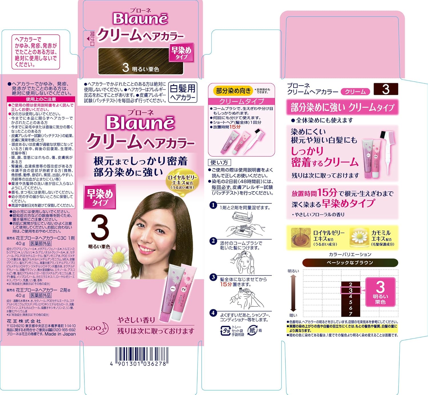 KAO Blaune Cream là dòng thuốc nhuộm phủ bạc nổi tiếng tại Nhật, được thiết kế dành cho nhu cầu nhuộm chân tóc, nhuộm từng phần hoặc nhuộm toàn đầu một cách dễ dàng tại nhà. Sản phẩm sử dụng công thức dạng kem tiên tiến, giúp màu bám chắc hơn, không bị chảy, không loang lổ và đặc biệt thích hợp cho người cần dặm phần tóc bạc mọc mới. Được yêu thích bởi thành phần thiên nhiên, mùi hương nhẹ, khả năng lên màu chuẩn rõ ràng và độ bền màu cao, Blaune Cream là lựa chọn lý tưởng cho người muốn giữ mái tóc trẻ trung, gọn gàng mà không mất nhiều thời gian.