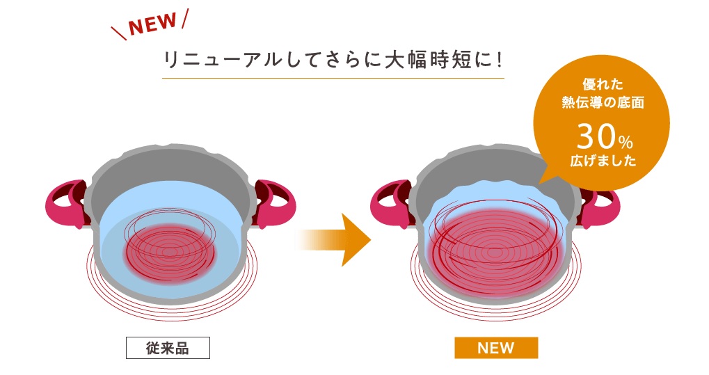 - Bằng cách mở rộng bề mặt tiếp đất của bếp điện từ (IH sưởi), nhiệt được truyền nhanh hơn và hiệu quả hơn, rút ngắn thời gian nấu nướng.