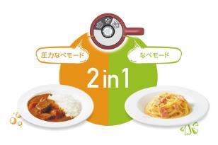 - Thiết kế kết hợp nồi áp suất và chảo nấu 2 trong 1.