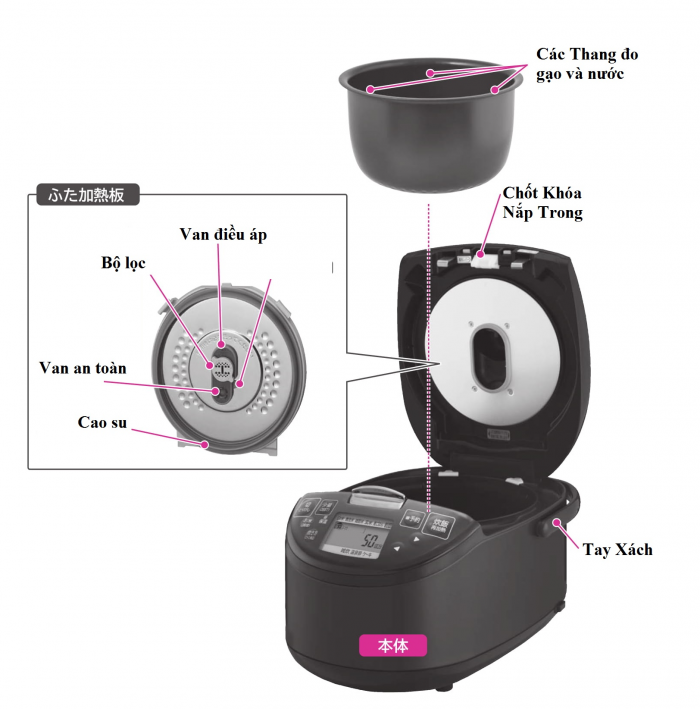 Nồi cơm điện Hitachi RZ-H10BJ sử dụng công nghệ cao tần và chức năng áp suất.