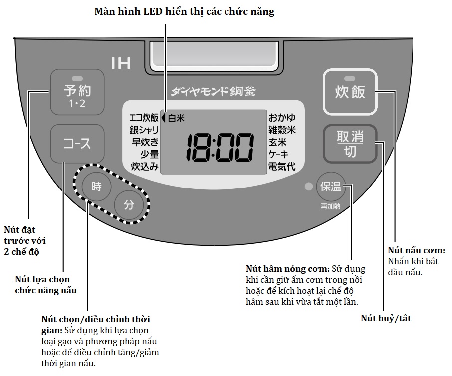 - Có chức năng hẹn giờ nấu. Đặc biệt hẹn giờ nấu 2 lần