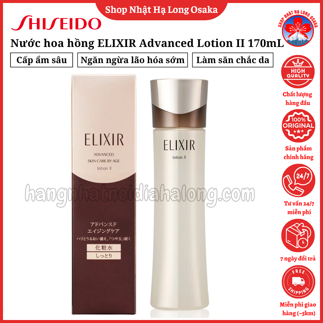 ELIXIR Advanced Aging Care Lotion II là nước hoa hồng chống lão hóa cao cấp thuộc dòng Advanced Aging Care của thương hiệu Shiseido ELIXIR, được thiết kế để cung cấp độ ẩm sâu, cải thiện độ đàn hồi và duy trì làn da săn chắc, sáng mịn mỗi ngày. Sản phẩm dành riêng cho làn da khô và da thường – những làn da đang dần mất đi độ ẩm và sức sống theo thời gian. Với kết cấu mềm mịn, trong suốt và tươi mát, Lotion II dễ dàng thẩm thấu sâu vào từng tế bào, không chỉ cấp ẩm tức thì mà còn giúp “khóa ẩm” bên trong da, để lại cảm giác ẩm mượt, mịn màng mà không nhờn rít.