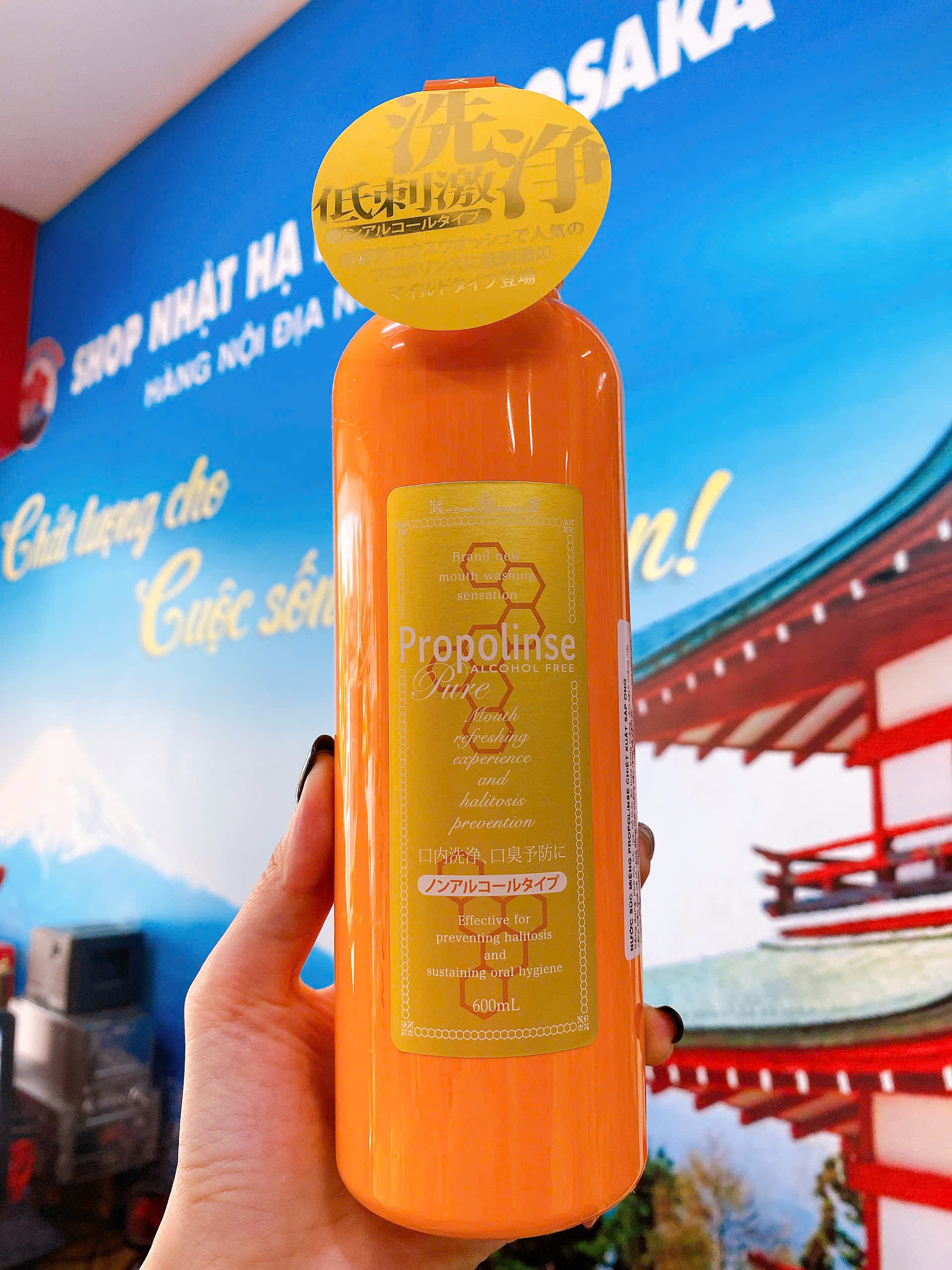 Nước súc miệng không cồn Propolinse Nhật Bản màu cam chiết xuất từ sáp ong thiên nhiên: giàu flavonoid kháng khuẩn, giúp làm sạch khoang miệng một cách tự nhiên. Với công nghệ độc đáo khi súc miệng, các vết ố protein – nguyên nhân chính gây hơi thở có mùi – sẽ đông lại thành mảng có thể nhìn thấy bằng mắt thường. Sản phẩm không chứa cồn, phù hợp với những người không thích vị cay gắt, kể cả phụ nữ và người có răng – nướu nhạy cảm.