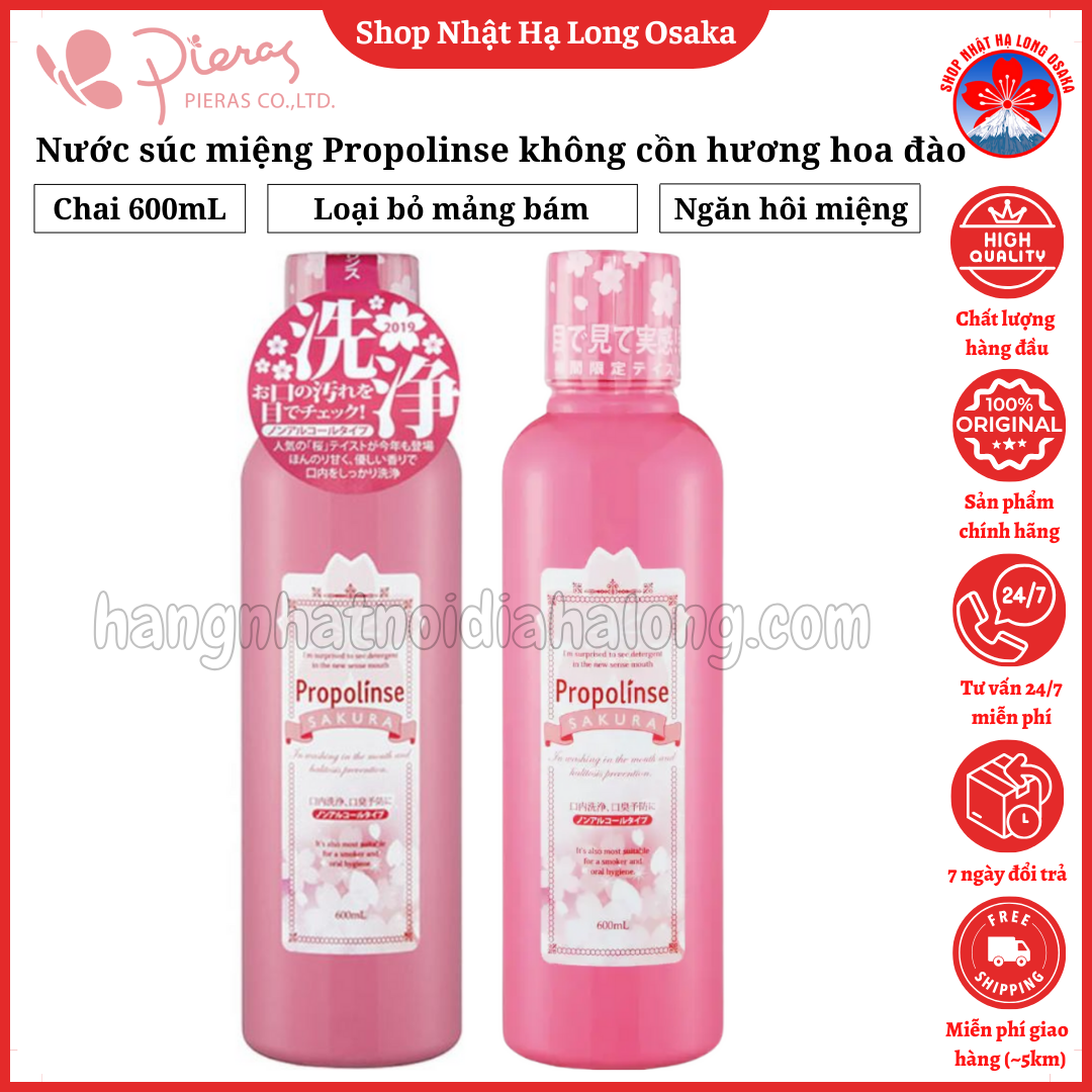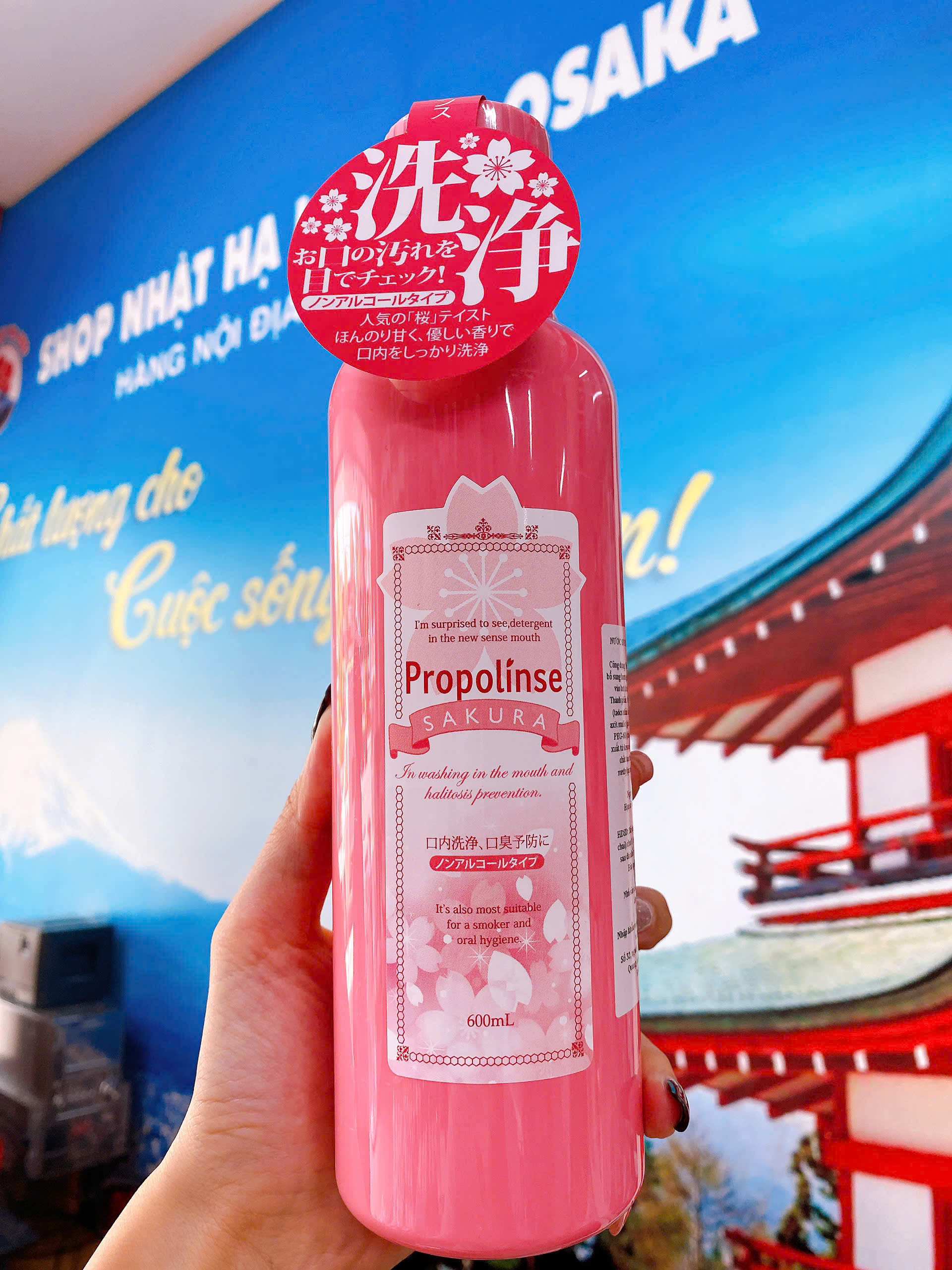 A: Điểm khác biệt lớn nhất là mùi hương và cảm giác khi dùng. Propolinse thông thường có vị the mạnh, còn Propolinse Sakura mang hương hoa anh đào thanh ngọt, nhẹ nhàng hơn. Cả hai đều có khả năng loại bỏ mảng bám và cặn protein trong khoang miệng, nhưng bản Sakura đem lại cảm giác dễ chịu, thư giãn hơn – đặc biệt phù hợp cho phụ nữ hoặc người thích hương vị tinh tế.