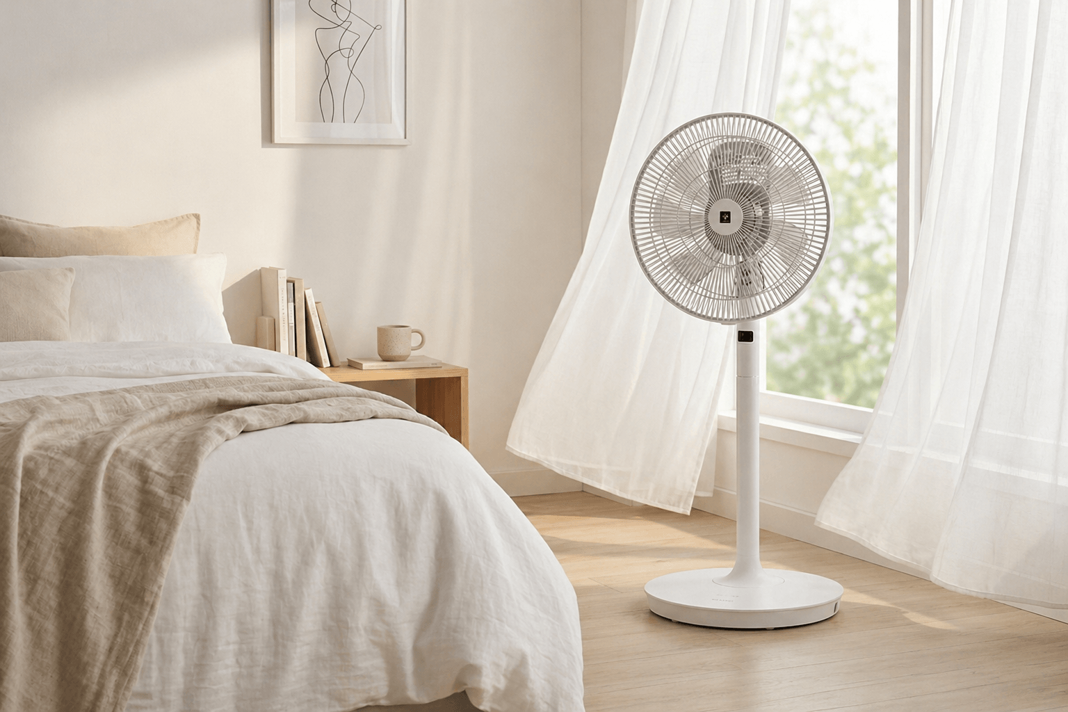 A3: Rất phù hợp. Nhờ động cơ DC vận hành êm, luồng gió mịn và chế độ ngủ thông minh, quạt giúp duy trì không khí dễ chịu suốt đêm mà không gây tiếng ồn hay cảm giác lạnh buốt. Người dùng có thể yên tâm ngủ sâu mà không cần bật/tắt nhiều lần.