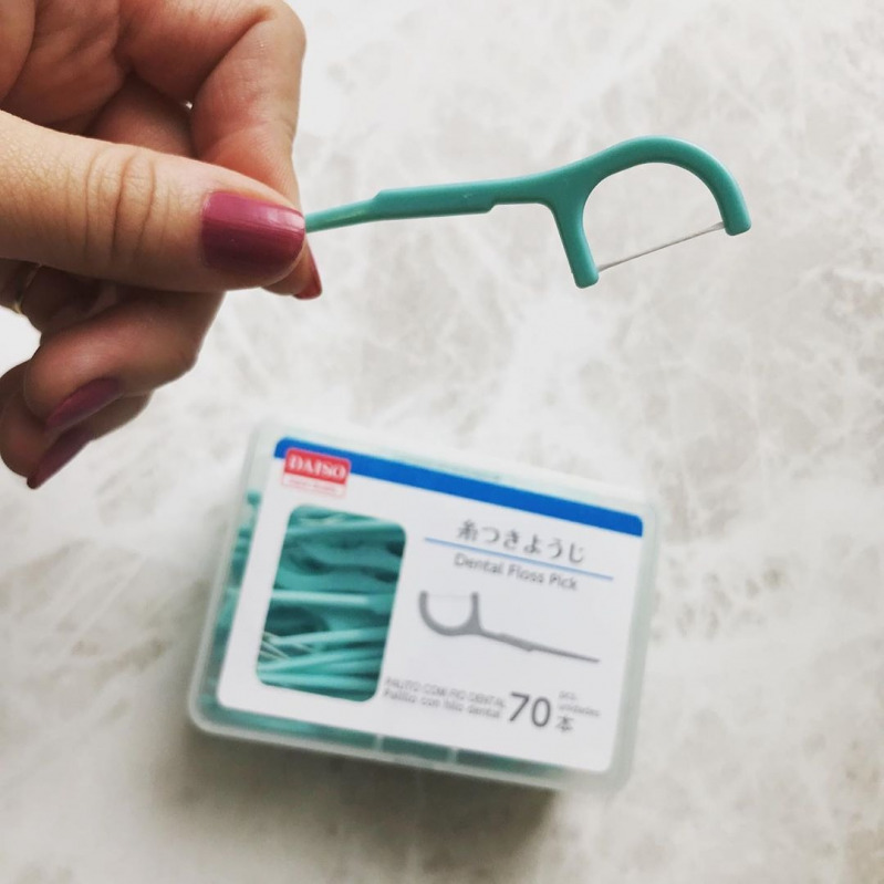 Tăm chỉ nha khoa Daiso giúp làm sạch những mảng bám ở kẽ răng, nơi bản chải không thể tiếp xúc.