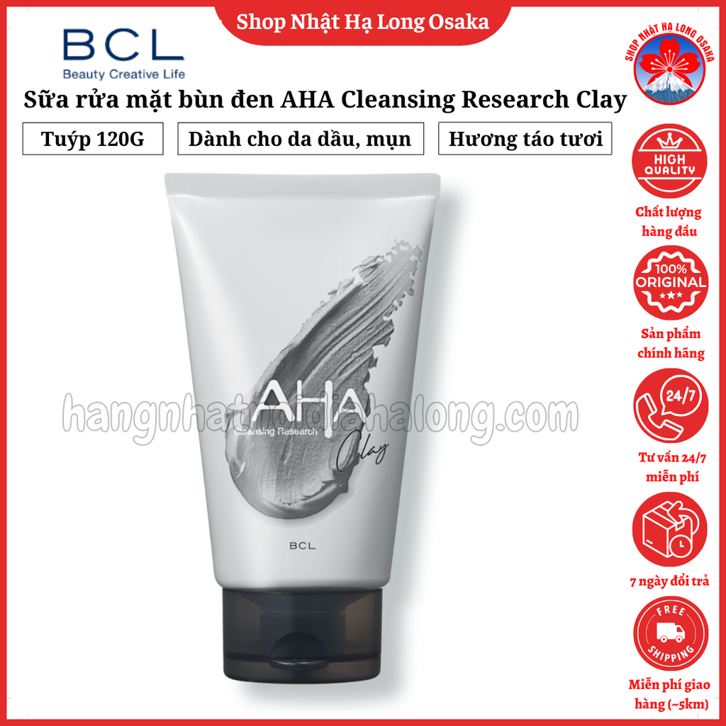 Sữa rửa mặt bùn đen AHA Cleansing Research Clay 120g là sản phẩm 3 trong 1: tẩy trang, rửa mặt và tẩy tế bào chết. Công thức chứa AHA (axit malic, axit lactic), enzyme papain, bùn biển và than hoạt tính giúp loại bỏ bụi bẩn, bã nhờn, tế bào chết và mụn đầu đen, làm sạch sâu lỗ chân lông. Chiết xuất lá cây phỉ, lá atisô, diếp cá cùng glycerin, diglycerin, polyquaternium-51 dưỡng ẩm, làm dịu và se khít lỗ chân lông. Hương táo tươi mát mang lại cảm giác sảng khoái. Phù hợp cho da dầu, hỗn hợp và nhạy cảm, giúp da mịn màng, sáng khỏe và đều màu.